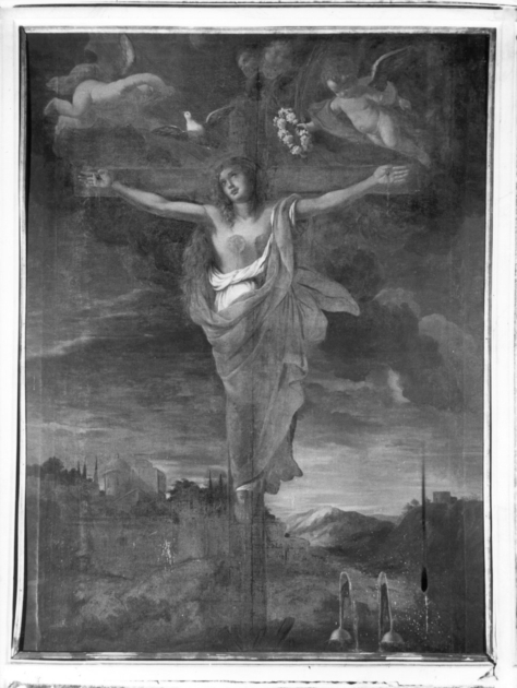 - NOTIZIE STORICO CRITICHE La tela è stata ampliata lateralmente di cm. 16 (8 per lato) probabilmente nel 1857 in occasione di radicali restauri restauri nell'interno della chiesa e della costruzione dell'altare su cui si trova