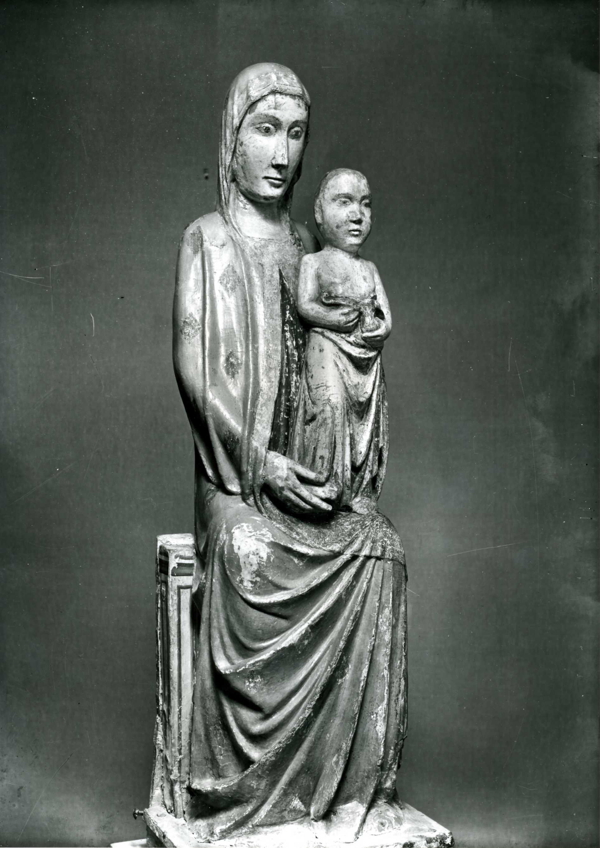 - NOTIZIE STORICO CRITICHE Questa scultura, esposta alla Mostra dell'Antiquariato a Firenze nel 1961, è stata pubblicata da Giovanni Previtali su Paragone (1965; 181) e collocata in ambiente umbro del primo Trecento. Confrontandola con la S. Caterina della collezione Gualino a Roma, egli l'attribuisce alla stessa, grande e anonima personalità artistica; "un maestro di cultura umbra, attivo agli inizi del '300, che seppe essere insieme grande scultore ed eccelso colorista" (Previtali op. cit). La scultura in questione è entrata quindi negli studi come opera del "Maestro della Santa Caterina Gualino" e, data la sua eccellenza qualitativa e l'ambiente culturale ancora in parte mal noto da cui proviene, costituisce un "unicum" artistico degno del massimo interesse e un punto di partenza fondamentale per gli studi sulla scultura lignea umbra del '300. Il De Carlo ha acquistato l'opera da un antiquario romano (si veda Decreto allegato)