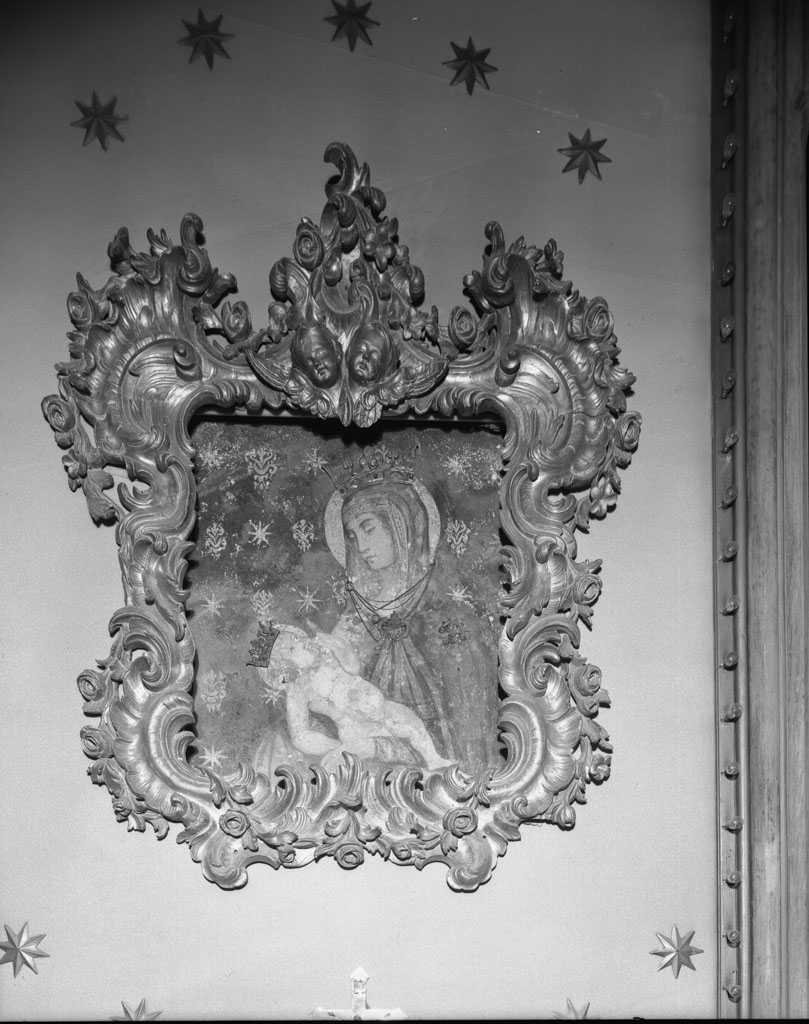 - NOTIZIE STORICO CRITICHE Fin dal 1608 si ha notizia di molte elemosine fatte ad un'immagine di Madonna detta "delle Grazie" dipinta in una Maestà lungo la via maestra in un luogo detto Rivaio. In questo luogo nel 1624-25 venne edificato un oratorio e nel 1642 si iniziò a costruire la chiesa attuale; nel giugno 1642 fu solennemente fatta la traslazione dell'immagine dall'oratorio (A. Del Vita). L'affresco, generalemtne datato tra la fine del XIV e l'inizio del XV secolo, è stato completamente ridipinto e allo stato attuale sembra essere opera di uno dei molti pittori locali che tra la fine del 1300 e l'inizio del 1500 erano attivi nella campagna aretina e hanno lasciato numerosi esempi di queste immagini, quasi sempre molto deteriorate, e che ripetono con poche varianti stilistiche schemi figurativi sempre uguali