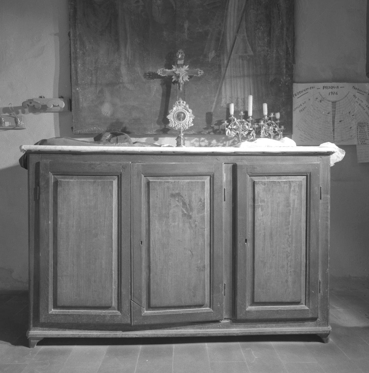 - NOTIZIE STORICO CRITICHE L'oggetto, per la sua massiccia struttura, per le superfici piatte, mosse appena dalle modanature riquadrate delle ante, rientra tra la produzione seicentesca di mobili semplici a destinazione chiesastica