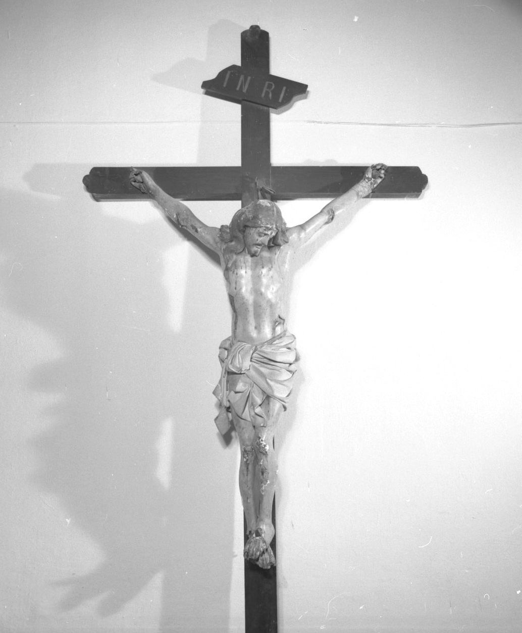 - NOTIZIE STORICO CRITICHE Crocifisso di piacevole fattura, la cui posizione frontale e la rigidità delle braccia denota un certo attardamento rispetto al più plastici crocifissi settecenteschi e in cui particolare attenzione è dedicata all'elaborazione del complesso panneggio del perizoma