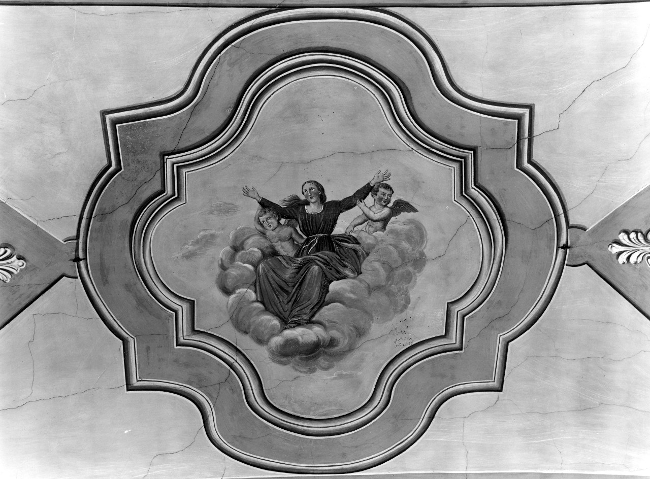 La decorazione della campata presenta al centro delle volte medaglioni sagomati mistilinei con cornici grigie e fondo azzurro all' interno dei quali vi sono rappresentazioni figurate. Nel medaglione in esame vi è raffigurata l' "Assunzione della Madonna"