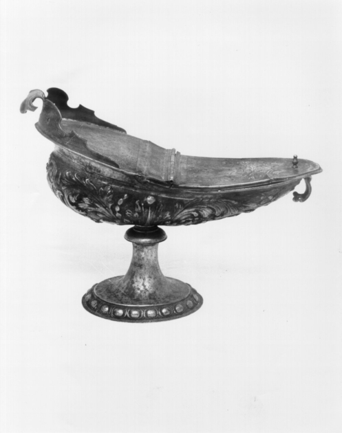 - NOTIZIE STORICO CRITICHE La navicella evidenzia, nella semplice cornice baccellata il cosciente recupero, da parte di Paolino Batoni, delle forme della tradizione lucchese, mentre le mosse foglie d'acanto che avvolgono la coppa costituiscono una sorta di adeguamento e di implicito omaggio al nuovo stile vambreesco
