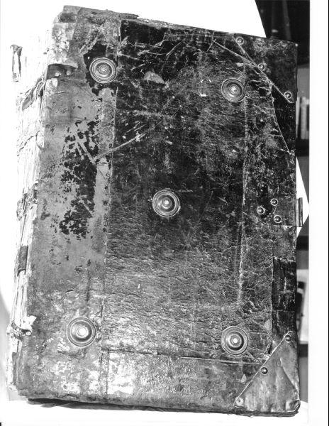 Antifonario. Coperta in cuoio nero con borchie circolari modanate, angolari e fermaglio. Frontespizio con incisione raffigurante aquila bicipite incoronata entro cartella. La prima pagina riporta un'incisione. A sinistra dell'incisione si legge: "ZANCHIIN." A destra: "SUOR ISABELLA PICCINI SEL."