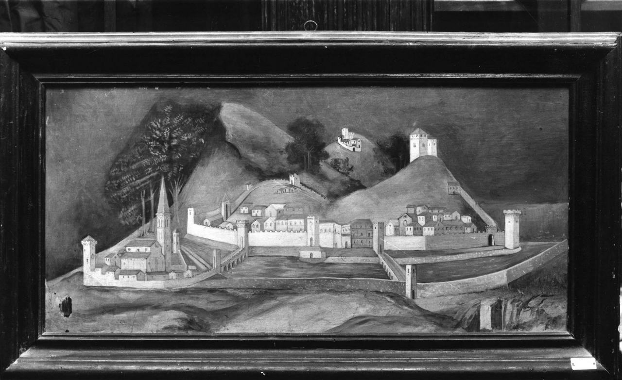- NOTIZIE STORICO CRITICHE Libera copia ottocentesca della veduta di Pescia posta sullo sfondo dell'affresco raffigurante Le tentazioni di sant'Antonio Abate, opera di Bicci di Lorenzo, nell'oratorio di S. Antonio Abate. Probabilmente anche questo dipinto è opera di Italiano Franchi, come l'altra veduta di Pescia tratta da una tela di Alessandro Tiarin (cfr. scheda 09/00114442)