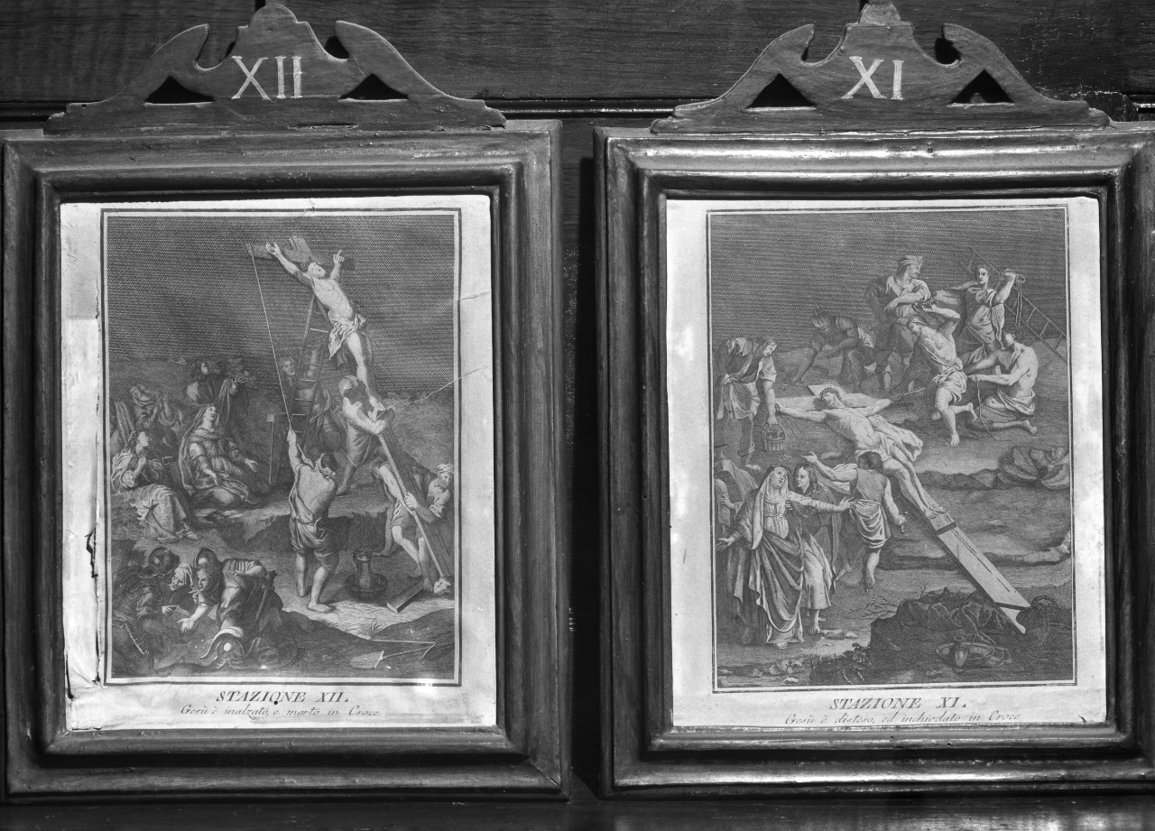 - NOTIZIE STORICO CRITICHE "La Venerabile compagnia della Buca di S. Antonio di notte posta in Pinti deve dare a me Gio. Batts Anichini legnauolo per lavori fatti in detto luogo ordinati dall'Illustrissimo Signor Marchese Cavaliere Lorenzo Niccolini......per avere fatto n. 14 quadrettini con le cornicie e telaio con crocie sopra e tiratori le Stampe della Via Crucis tinti di nero messovi le sue campanelle per attaccargli in tutto tra spesa e stampe e compreso il tutto a soldi 31.68. L'una importano soldi 2.4.13 (A.S.F. Compagnie Soppresse, filza 107, 19 Giugno 1778). La nostra Via Crucis penso sia da identificare con quella descritta nel documento dell'A.F.S. e quindi databile al 1778. Proviene dalla prima sede della confraternita in Borgo Pinti, donde fu spostata nel 1828 quando la Compagnia, dopo la soppressione leopoldina ebbe l'attuale sede