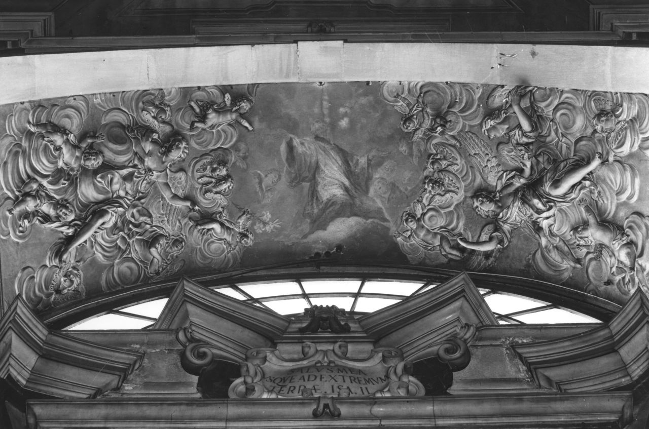 Gli stucchi disposti a corona di un affresco, raffigurano angeli in volo e putti drappeggiati in panneggi, in parte ad altorilievo e in parte a bassorilievo. Alcune cadute nello stucco