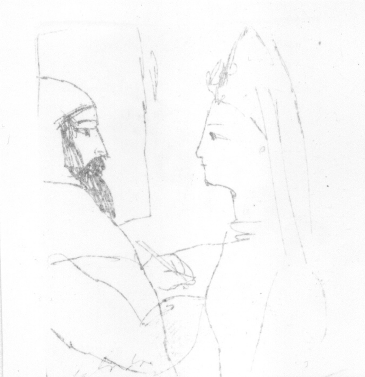 - NOTIZIE STORICO CRITICHE Il soggetto è tratto dalla novella terza, giornata terza, del "Decamerone" di Giovanni Boccaccio, che narra come un astuta dama, innamorata riuscì a servirsi di un "salame" di frate come mezzano. Dopo gli inizi del Novecento la pittura del Salvadori si orienta sempre più in verso francese, riesaminando la tradizione "fauve" e cubista che il pittore interpreta in senso accentualmente lirico, realizzando immagini di consueta delicatezza e malinconia. Nella attività matura (alla quale appartiene il nutrito gruppo di fogli certaldesi) sembrano evidenziarsi rapporti con Matisse col quale condivide la sintesi grafica, le forme raccolte, avoidi, e i toni del nudo e del ritratto femminile; caratteri questi che vengono svolti da Salvadori con ulteriore intimismo e fragilità