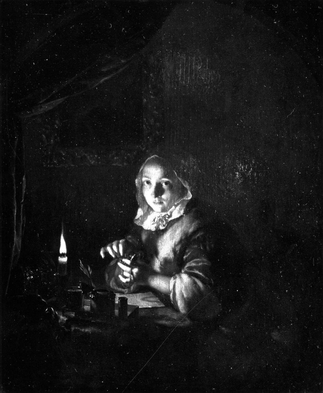 - NOTIZIE STORICO CRITICHE Lo Smith ritiene che il quadro provenga dalla collezione del marchese de V oyer, ma evidentemente si tratta di un altro esemplare. Il dipinto, attri buito nell' inventario della collezione del principe Ferdinando a F.Van Mi eris (1713), fece forse parte del gruppo di opere fiamminghe inviate a Fer dinando dal cognato, Elewtore Palatino di Dusseldorf, agli inizi del Sette cento. Il quadro fu esposto nel 1753 nella Tribuna degli Uffizi con l'attr ibuzione a 0. Netscher, accettata successivamente da tutti gli storici che se ne sono occupati. Tuttavia M. CHIARINI (1975 e 1979) lo attribuì di nuovo al Van Mieris sulla base del documento del 1713. Più recentemente il Naumann ( 1981) lo ha però confermato al Nescher. Quest' ultima attribu zione sembra ora la più convincente anche all'estensore di questa scheda, soprattutto dopo aver visto un disegno relativo al quadro (L'Aja coll. privata), che è indubbiamente del Netscher e certamente in rapporto col d ipinto degli Uffici, come pensava Hofstede de Coot ( p. 177, nr. 63). Il q uadro fu incluso nella serie di tavole dedicate all' illustrazione della T ribana degli Uffizi (1763)