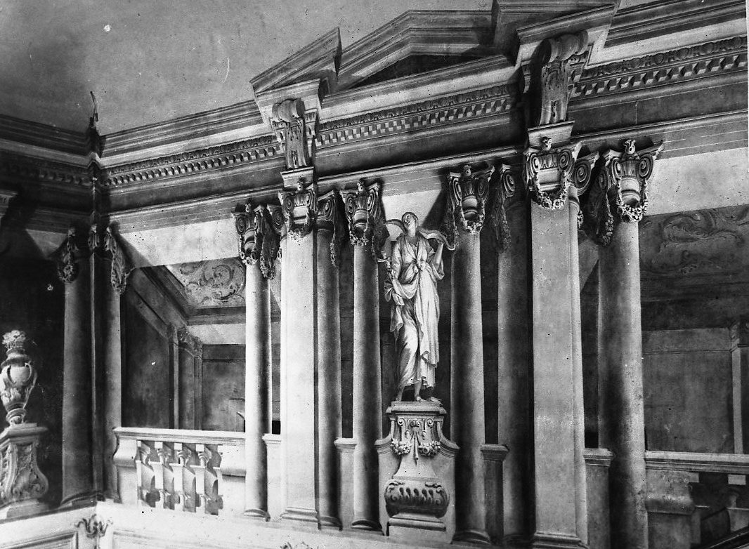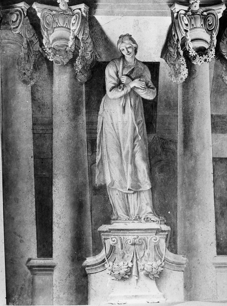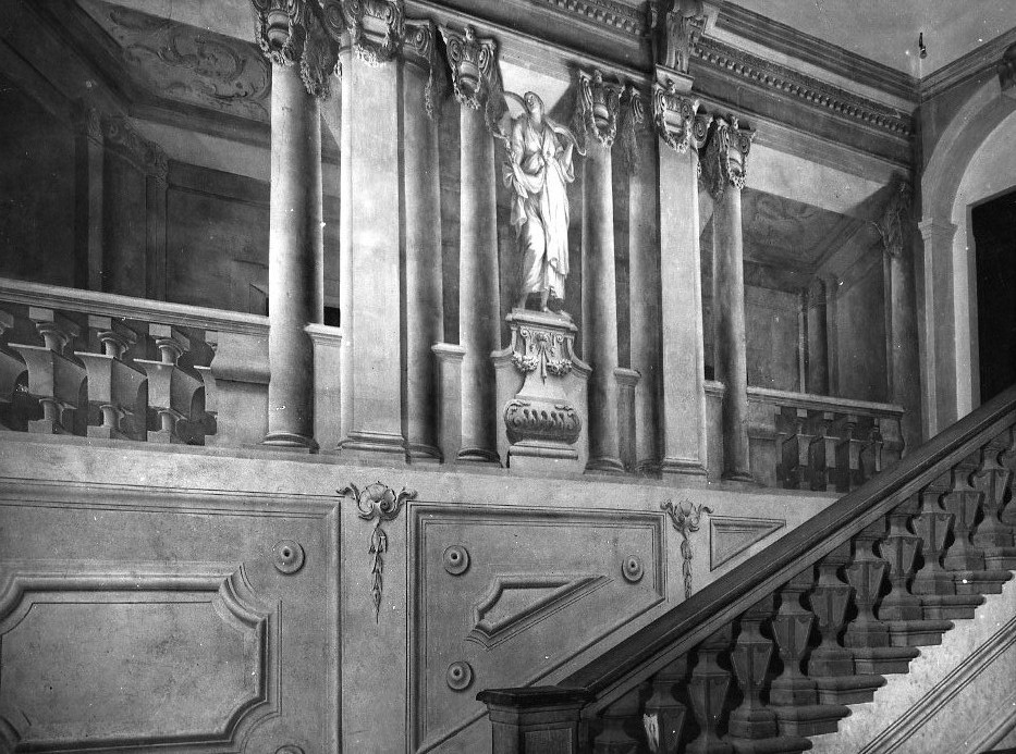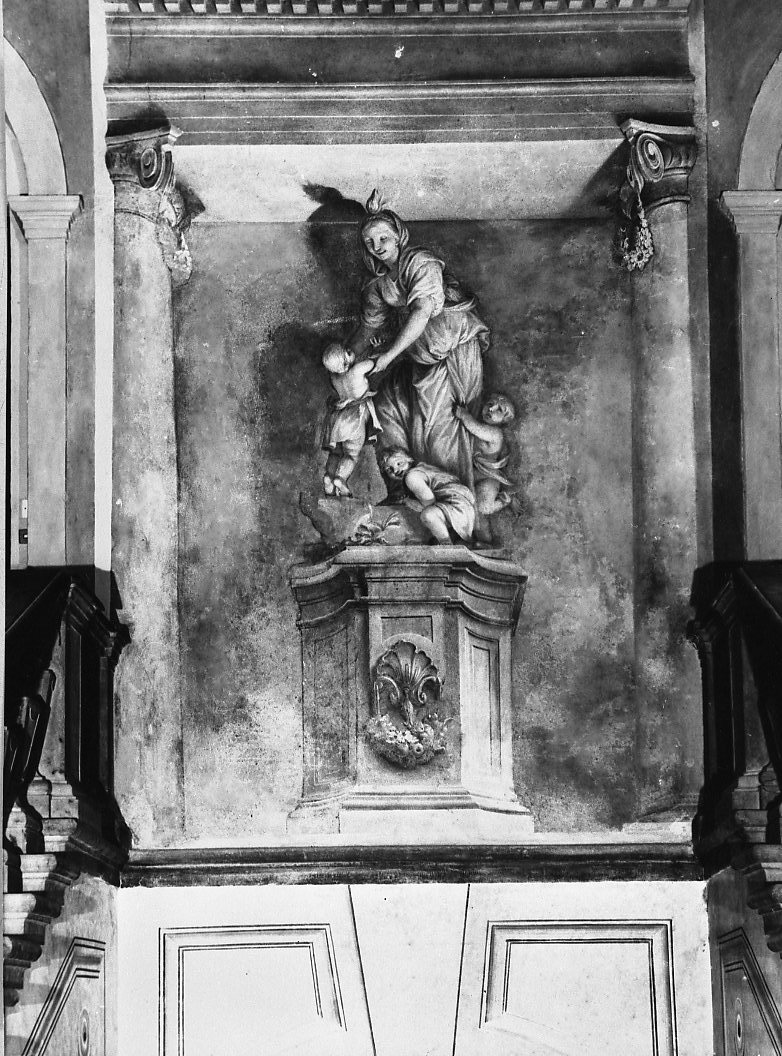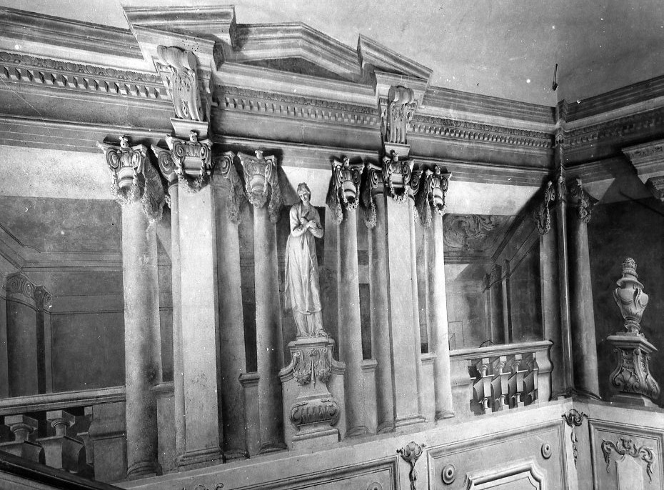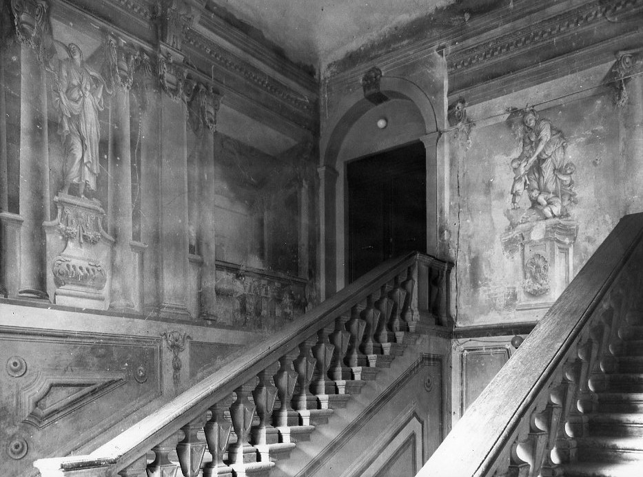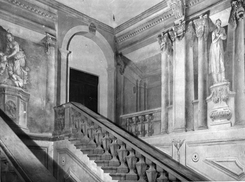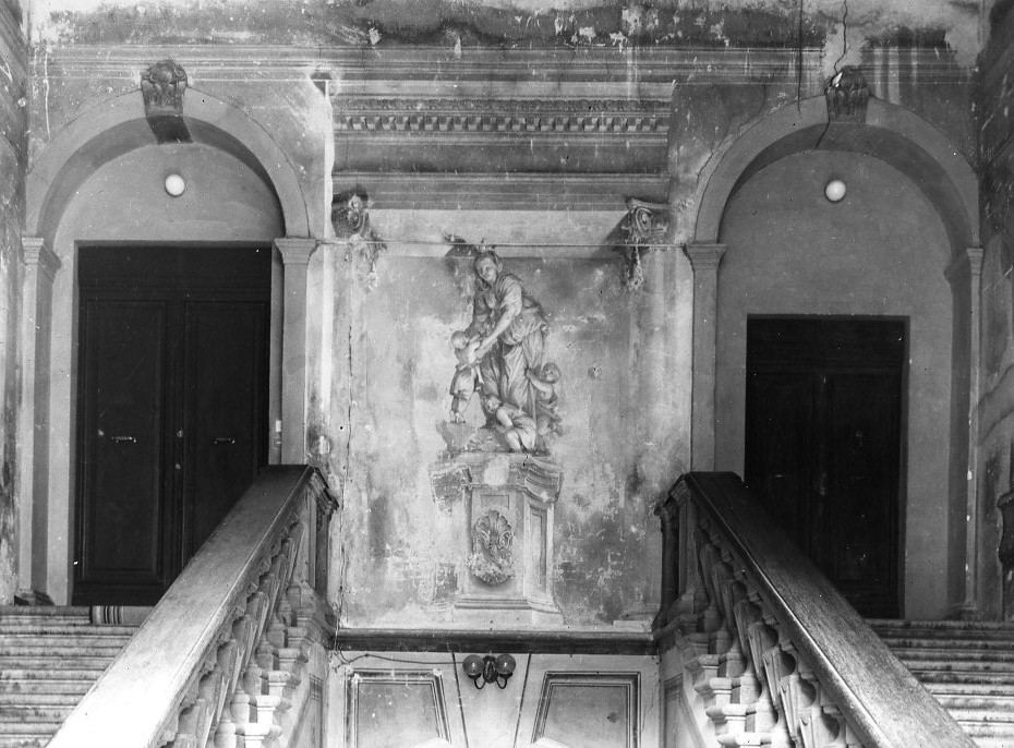 Il vano scale dell'ex convento di S. Silvestro è interamente decorato a monocromo con prospettive e figure allegoriche rappresentanti la "Fede", la "Carità", e la "Speranza". Esse sono inserite in architetture dipinte, sempre in monocromo che danno l'illusoria sensazione della continuità delle strutture reali in quelle fittizie. Così la balaustra reale della scala a doppia rampa sembra continuare con identici pilastrini lungo il ballatoio a sinistra e a destra delle due rampe. Ed è su queste due pareti che si affacciano tra colonne e pilastri coronati da capitelli corinzi le due figure allegoriche della "Speranza" e della "Fede" rappresentate da due donne statue su piedistalli. Alle braccia conserte dell'una, al suo sguardo volto in basso, fa riscontro, sul lato opposto, l'allargar delle braccia e il rivolgere gli occhi al cielo dell'altra. Entrambe hanno ampie vesti elegantemente mosse
