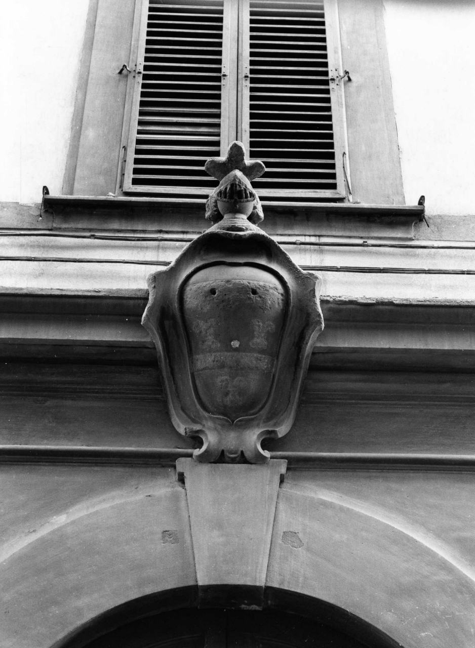 - NOTIZIE STORICO CRITICHE Lo stemma appartiene alla famiglia Frescobaldi, che già dal XV secolo possedevano case in Via Santo Spirito e che su queste edificarono l'attuale palazzo. Lo stemma, per tipologia del repertorio decorativo, sembra da ascriversi al tardo secolo XVII