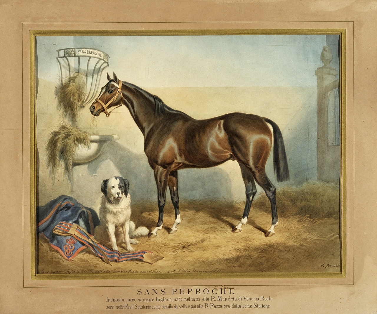 - ISCRIZIONI in basso - SANS REPROCHE/ figlio di Cobnullè nato alla Venaria Reale appartenente a S. M. Vittorio Emanuele II. S. Grimaldi - a stampa -