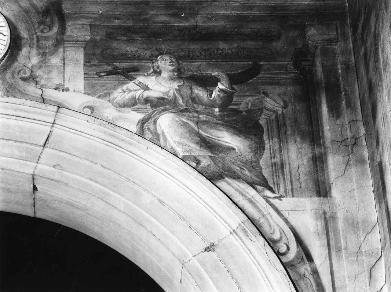 - NOTIZIE STORICO CRITICHE La virtù è raffigurata come una donna seduta con veste giallo-dorata che sorregge la croce e il timone (?). Fa pendant con l'altra virtù sul lato destro dell'arco. L'autore è probabilmente quello della volta, Filippo Maria Galletti