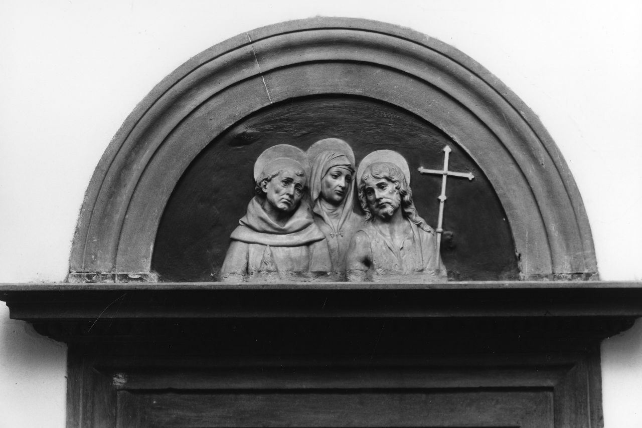 - NOTIZIE STORICO CRITICHE Il rilievo plastico è copia parziale della pala in terracotta smaltata con Madonna e Bambino fra angeli e santi di Andrea della Robbia, nella Cappella dei Medici in Santa Croce a Firenze. Si colloca fra il sec. XIX e il sec. XX, epoca che vide il proliferare di copie e imitazioni delle opere dei Della Robbia