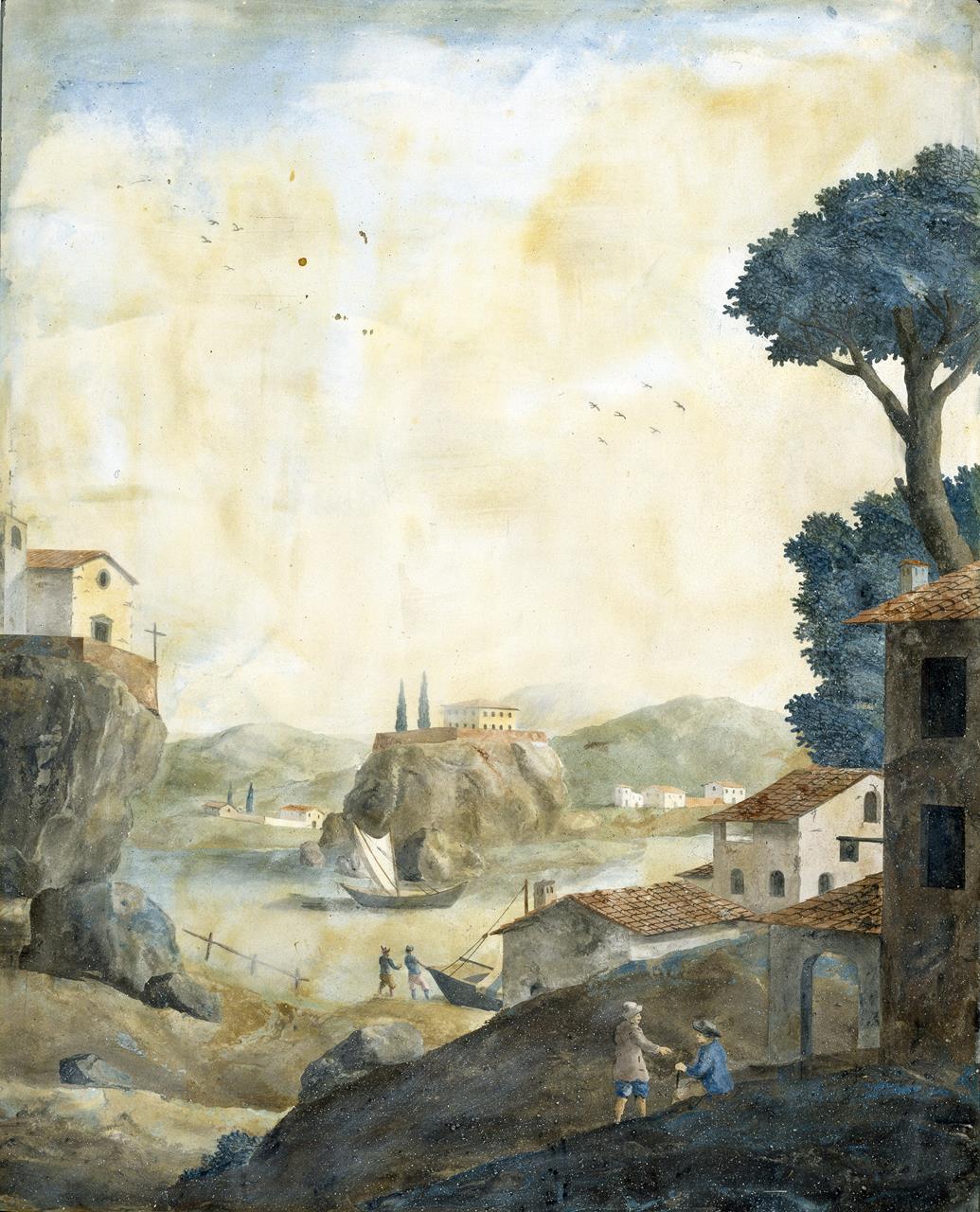 - NOTIZIE STORICO CRITICHE Insieme ad un’altra scagliola di soggetto fluviale, conservata presso il Museo dell’Opificio delle Pietre Dure, questo paesaggio fluviale faceva parte di una serie di quattro acquistate nel 1779 dal Granduca dagli eredi di Ignazio Hugford, fratello di Enrico. Mentre il terzo paesaggio si trova tuttora conservato a Palazzo Pitti (Inv. 1624), nessuna traccia è rimasta della quarta scagliola, che si può supporre presentasse anch’essa un soggetto marino. Tutte le fonti artistiche locali del Sette-Ottocento sono concordi nell’attribuire ad Enrico Hugford il merito di aver portato a grande perfezione la tecnica della scagliola, con lo spostare l’interesse dal puro genere ornamentale a soggetti di carattere descrittivo, di aver inaugurato un genere di pittura di grande dignità espressiva. Enrico Hugford, il cui affinamento nell’arte della scagliola si compì forse in una Abbazia dell’Appennino Tosco-Romagnolo (Santa Reparata a Marradi), fu molto richiesto dai sovrani, come ci informa un manoscritto settecentesco scritto tra il 1771 e il 1779 dal suo allievo Lamberto Cristiano Gori, e copiosissima fu la sua produzione, di cui peraltro sono rimaste poche tracce. La scagliola in esame, di cui è da notare anche il discreto stato di conservazione, raro in questa particolare tecnica, dimostra appieno le possibilità dello Hugford di conferire alle sue opere una particolare lucentezza e gradevolissimi passagi di sfumato, dovuti anche alla delicatezza delle gamme cromatiche impiegate che trasmettono ai vaghi paesaggi il morbido ed assieme etereo tratto dell’acquerello