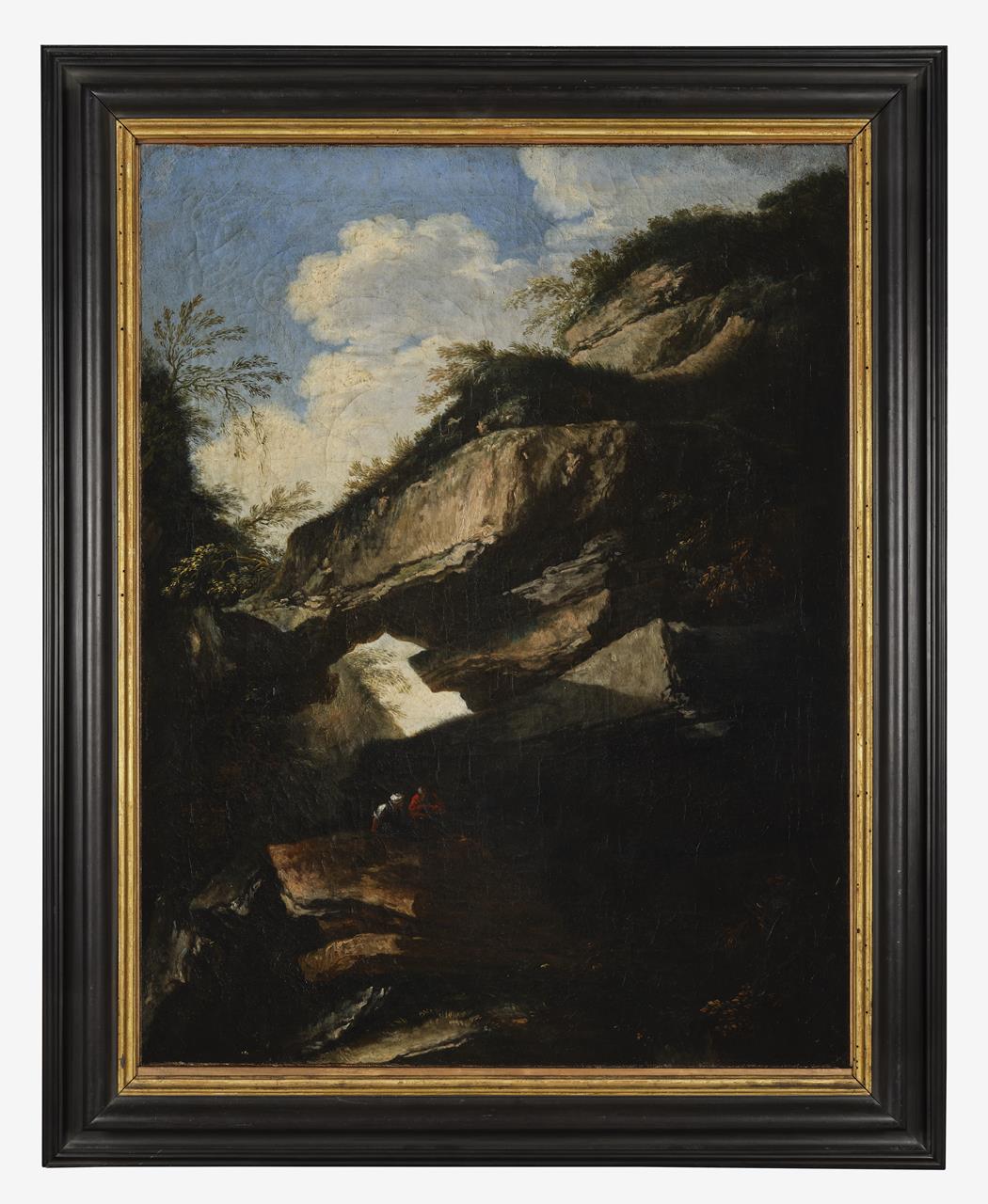 - NOTIZIE STORICO CRITICHE Il dipinto, insieme ad un’altra opera sicuramente attribuibile allo stesso autore, “Un paesaggio roccioso con due figure”, compare nell’inventario del 1789. Anche questa tela presenta uno stato di conservazione assai mediocre che ne impedisce una leggibilità certa, ma sono comunque visibili gli stretti legami stilistici e compositivi che può collegarla alla tarda produzione di Salvator Rosa, e, più specificamente, alla serie dei quattro dipinti con Eremiti – tra l’altro di identiche dimensioni che si trova oggi distribuita tra Monaco (alla Alte Pinakothek), Londra (collezione Denis Mahon), Roma (Raccolta Busiri-Vici). Stringenti affinità si possono anche notare con “L’Eremita”, conservato a Monaco, di cui praticamente, questa tela dell’Opificio costituisce una versione speculare