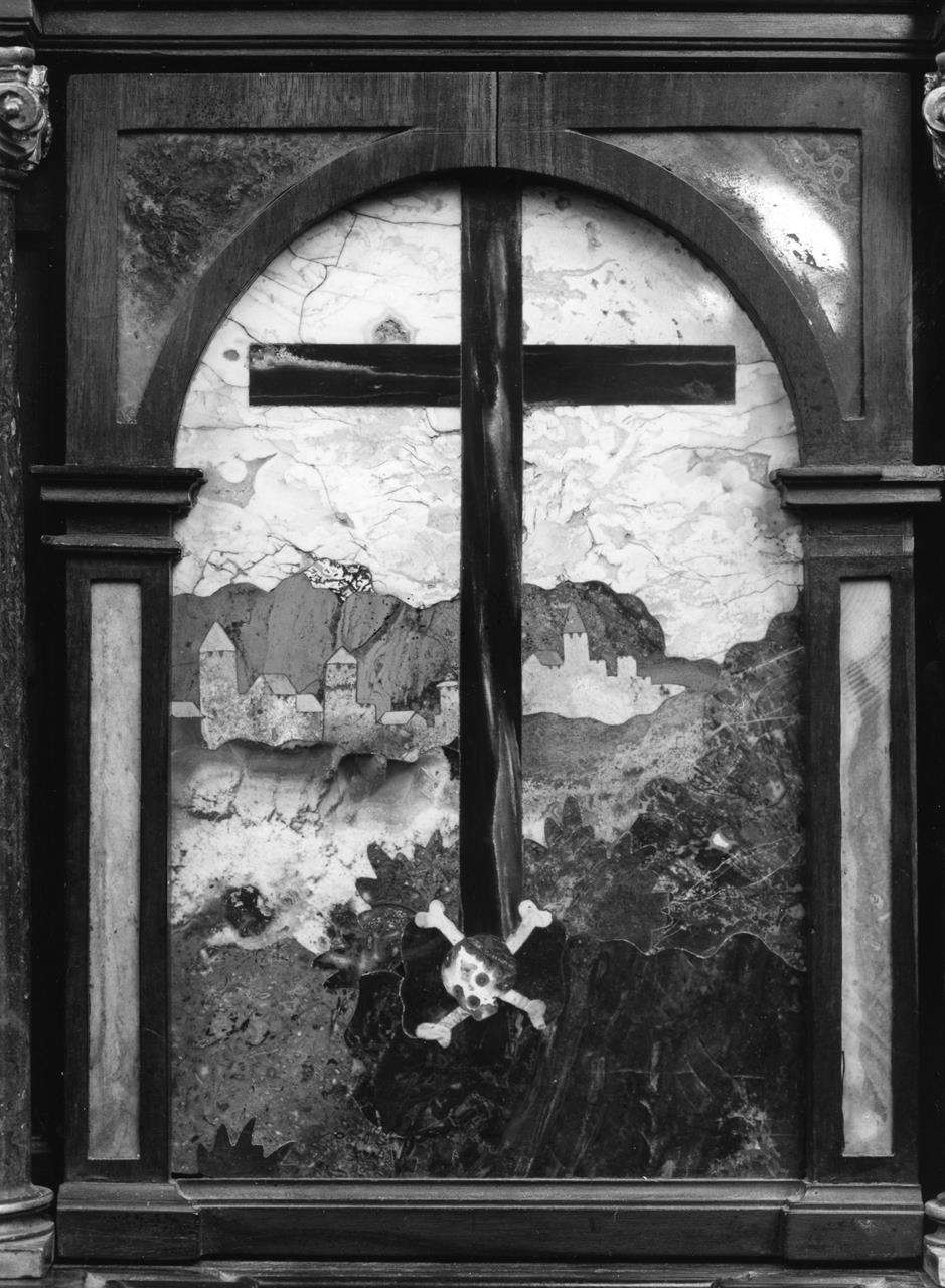 - NOTIZIE STORICO CRITICHE Questo complesso oggetto, trasferito il 21 aprile 1857 dalla Guardaroba di Palazzo Vecchio all’Opificio per probabili restauri, come risulta dal verbale di consegna, sembra essere un prodotto di “Alemagna” (A.S.G. Filza 1857, c. 4). Di questo restauro ottocentesco non resta documentazione scritta, ma certo questa operazione apportò aggiunte riconoscibili nei quattro peducci laterali, a foggia di mascheroni in bronzo dorato, di gusto neo-manieristico, o anche nella recinzione a balaustri del coronamento, eseguito in legno e bronzo. E’ probabilmente in questa occasione che furono prelevati, dai materiali in deposito presso l’Opificio, i quattro vasetti in agata che oggi sono visibili a coronamento dello stipi. La tipologia di questo prezioso oggetto si riallaccia ad una tradizione prettamente cinquecentesca, dove creazioni del genere erano adibite alla conservazione di cose antiche e segrete, oggetti muniti di meccanismi con aperture mimetizzate: qui la chiave è rappresentata dalla colonnina a sinistra del vano centrale che apre, sia pure nelle ridotte dimensioni dello stipo, ben ventiquattro tra cassetti e sportelli. A tutta questa ricchezza ingegneristica si aggiunge inoltre una scacchiera incassata nel basamento superiore, intarsiata in avorio e legno. Lo stipo, nonostante le variazioni subite in seguito alla perdite di elementi proprii delle strutture originarie, anche in virtù dei restauri ottocenteschi, riesce comunque a conservare un disegno di classica misura, ancora cinquecentesco, sia nelle limpide scansioni architettoniche che nella coerenza compositiva delle singole parti, dove la preziosità dei materiali usati ben si coniuga con la raffinata tecnica di lavorazione. L’appartenenza dello stipo ad un ambito culturale nordico si può riscontrare da vari particolari solo apparentemente secondari, quali le due mensoline in argento dorato che recano sulla faccia superiore due coppie di animali onirici in lotta tra loro (di derivazione tardo-gotica) che, nelle regioni del nord, senza soluzioni di continuità, si riallacciano alle realizzazioni di bizzarro decorativismo di gusto manierista: e anche lo stesso impiego dei materiali, che oltre ad essere di ambito nord-europeo, quali i diaspri di Boemia e di Alsazia, rivelano una lavorazione a fasce e specchiature geometriche di gusto peculiarmente germanico, così come le otto formelle raffiguranti varie vedute urbane e paesaggi, sono molto affini alle creazioni prodotte dalla bottega del Castrucci, attivo a Praga, presso la Corte Imperiale del 1628, data che costituisce quindi un termine “ante quem” per la sua datazione, probabilmente oggetto inviato in dono da Praga a Cosimo III come esempio qualificcato della produzione dell’atelier del Castrucci