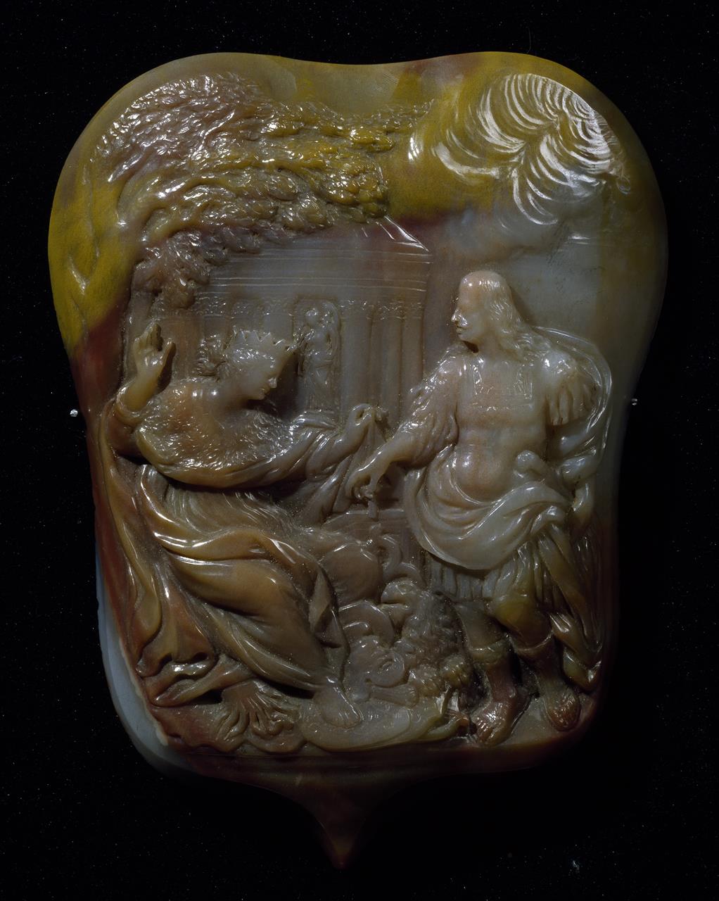 - NOTIZIE STORICO CRITICHE Sotto il regno di Cosimo III l’incisione sia su pietra che su metallo, era particolarmente fiorente. In città si ricordano attivi molti maestri incisori tra i quali Massimiliano Soldani Bensi (1645-1759) che nel 1684 incise una medaglia d’argento con l’effigie del Granduca e, sul retro, una allegoria della Pace che il Granduca aveva assicurato alla Toscana durante il suo regno. Questo soggetto fu molto gradito a corte e ripreso, nel campo della glittica, da Giuseppe Antonio Torricelli (1662-1719), discendente di una famiglia tradizionalmente legata alla lavorazione delle pietre dure e che amò dedicarsi a lavori di speciale impegno virtuosistico, di cui ha lasciato memoria in un suo manoscritto inedito conservato presso la Biblioteca Nazionale di Firenze. Da notare che in questo caso non si può parlare di cammeo, ma piuttosto di rilievo in quanto l’eccezionale mole del pezzo rendeva pressochè impossibile sfruttare le macchie naturali della pietra