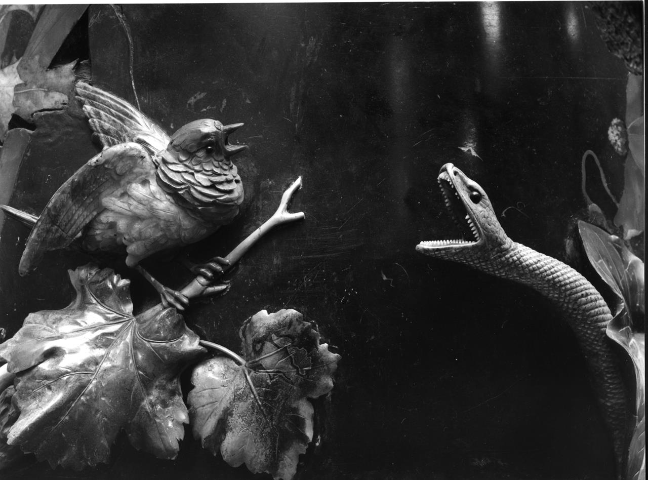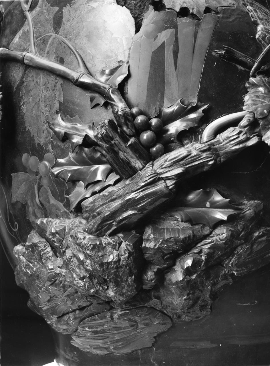 - NOTIZIE STORICO CRITICHE Questa opera incompiuta appartiene agli anni in cui la produzione dell’Opificio si indirizzava particolarmente alla vendita, ed Edoardo Marchionni, sempre sensibile alle mutazioni del gusto, tenendo anche conto degli interventi delle Esposizioni Universali, con entusiasmo inizia “un gran vaso che per la prima volta presenterà il lavoro di commesso sulla superficie curva, misto e collegato al lavoro di alto e basso rilievo” (A.O.P.D., relazione 1884). L’anno successivo il Marchionni scrive “grande e complicato è il lavoro di un vaso di proporzioni colossali già in corso al principio di quest’anno” (A.O.P.D., relazione 1886-87). Purtroppo il Marchionni non si era reso conto della grande crisi finanziaria in cui versava l’Opificio dopo il 1880: le vendite notevolmente diminuite, i finanziamenti ministeriali sempre più esigui, tanto che anche la partecipazione dell’Opificio alla Esposizione di Londra del 1887 era stata incerta fino all’ultimo per mancanza dei fondi necessari per la spedizione. Il vaso veniva a costituire quindi un’opera troppo costosa ed ormai fuori tempo. I lavori di glittica, guidati da Paolo Ricci “maestro di scultura” e Pietro Brunacci “maestro delle segherie”, andarono avanti a rilento, si protrassero per ben dieci anni e, morto nel 1892 Paolo Ricci, si interruppero. E così, come laboratorio di arte industriale, l’Opificio chiudeva i battenti. Rimasto allo stato di frammento (anche il modello in gesso, a grandezza naturale, era andato disperso) solo nel 1952, grazie all’opera di Renato Bresci, il vaso fu ricostituito pur mantenendo le numerose lacune, e privo della parte terminale a corolla di fiore. Stilisticamente si può dire che accanto ai tradizionali ornamenti di foglie e fiori che portano la chiara firma del Marchionni, si può notare qualche timido accenno ad una sinuosità liberty, anche se più corposo e plastico ed ancora legato ad una concezione naturalistica dell’osservazione della realtà