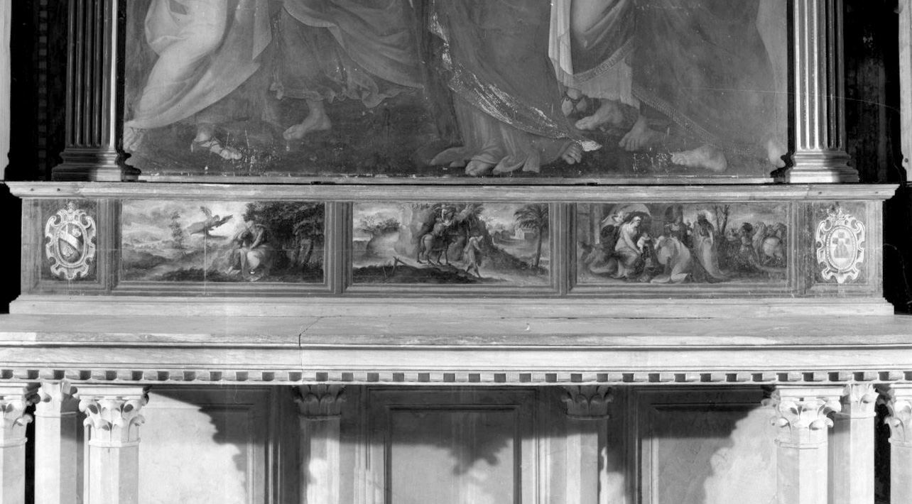 - NOTIZIE STORICO CRITICHE Si tratta della predella dell'adorazione dei Pastori iniziata dal Riccio e terminata da Salimbeni oggi nella parete destra vicino all'ingresso della chiesa del carmine (A. Cornice, 1979, p. 202). Attualmente è collocata sotto la tavola di Girolamo del Pacchia nel secondo altare sinistro (vedi scheda 0900184692). Il Della Valle la 'attribuì alBrescianino' o a 'qualche altro che nel far gli somiglia' (1786, III, p. 333), il Romagnoli ad Arcangelo (1832, p. 64, ca. 1835, VII, pp. 786-88), il Brogi ad Arcangelo e al Riccio(1862, VII, n. 39 pp. 26-27). Per il Cornice è autografa di Arcangelo