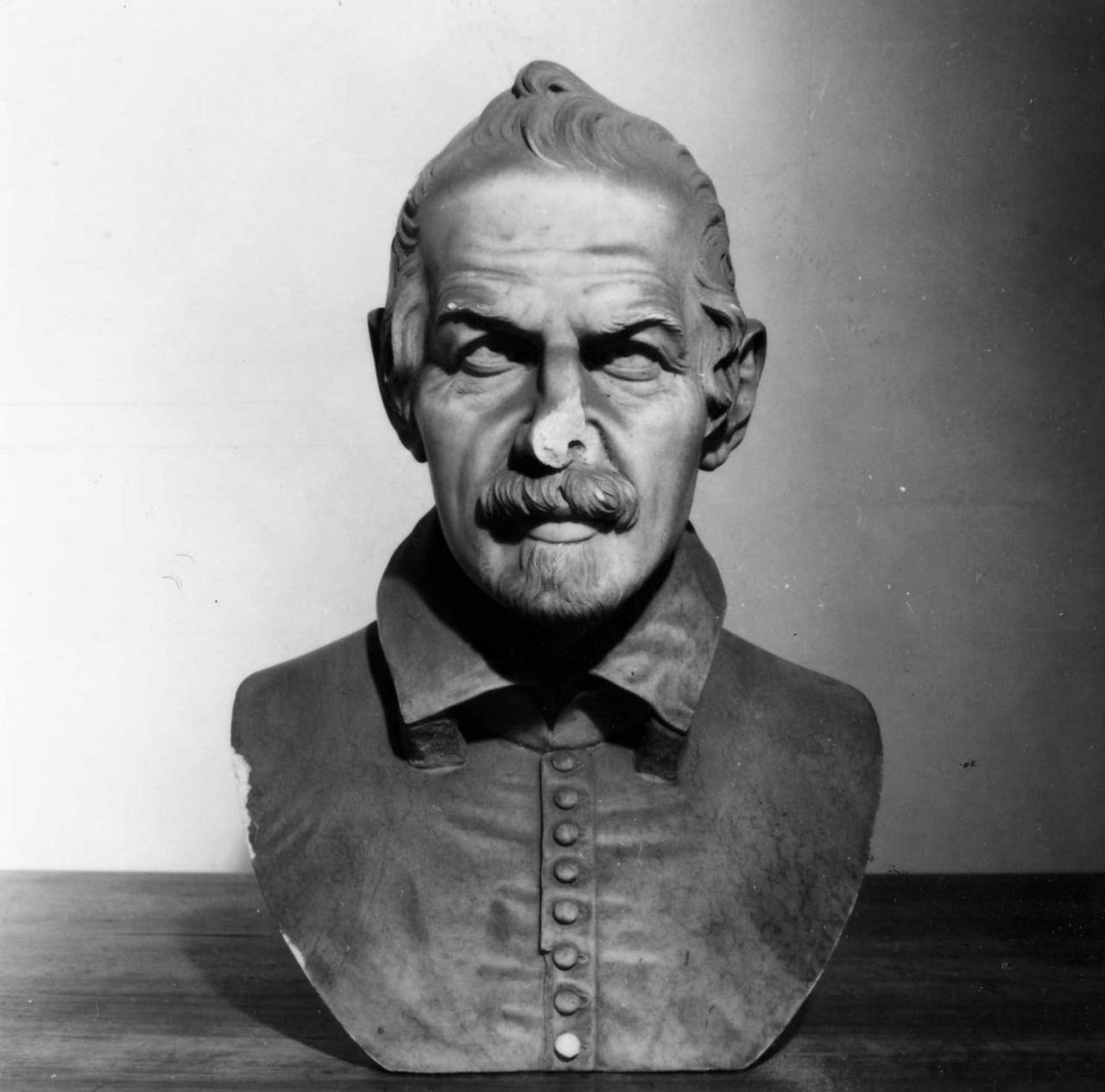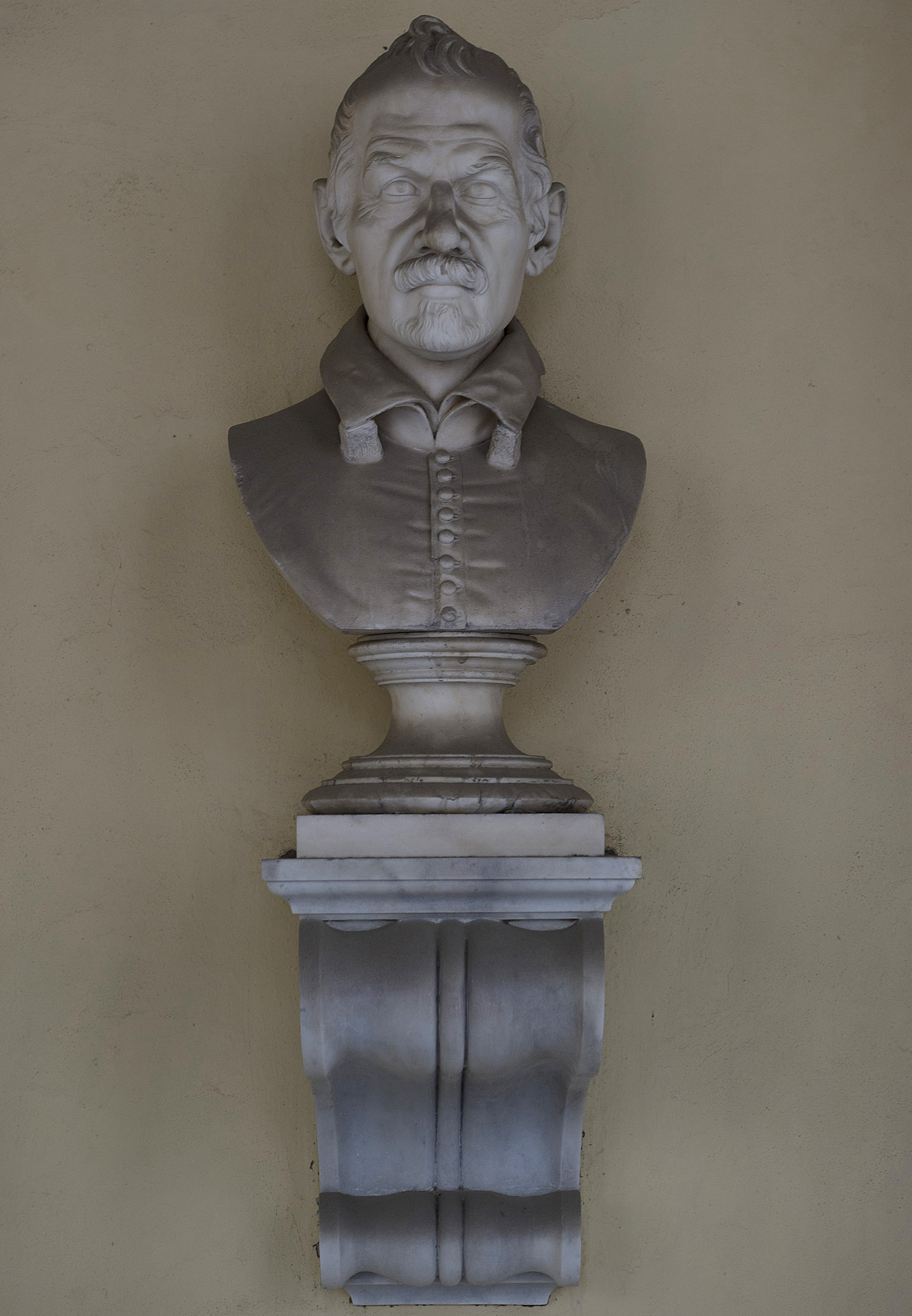 - NOTIZIE STORICO CRITICHE Il busto, stilisticamente riconducibile a una produzione seicentesca, proviene probabilmente da uno di tanti monumenti funerari esistenti fino ai primi decenni del Novecento nel chiostro delle Ossa dell'Arcispedale. Asportato in data imprecisata dalla sua collocazione originale è ora diffcilmente ricollegabile al contesto di appartenenza. La scultura risultava sistemata nell'ufficio del direttore amministrativo fino al 2006 (vd. revisione della scheda OA di quell'anno). Attualmente il busto è collocato nel Tempietto Galli Tassi, nella porzione di parete alla destra della statua del conte Angelo Galli Tassi. Non è chiaro quando sia stato spostato in questa sede poiché non è stata reperita nessuna documentazione in merito, ma possiamo ipotizzare che la sistemazione sulla parete sia stata approntata nel corso del restauro del Tempietto Galli Tassi avvenuto tra il 2012 e il 2014