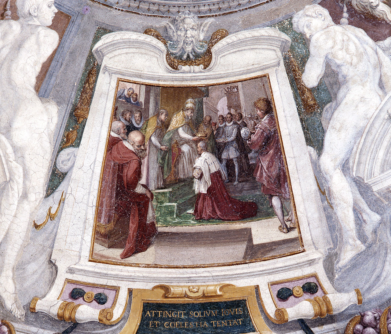 - ISCRIZIONI sotto l'affresco - ATTINGIT SOLIUM FOULS/ ET COELESTIA TENTAT - lettere capitali - a pennello - latino