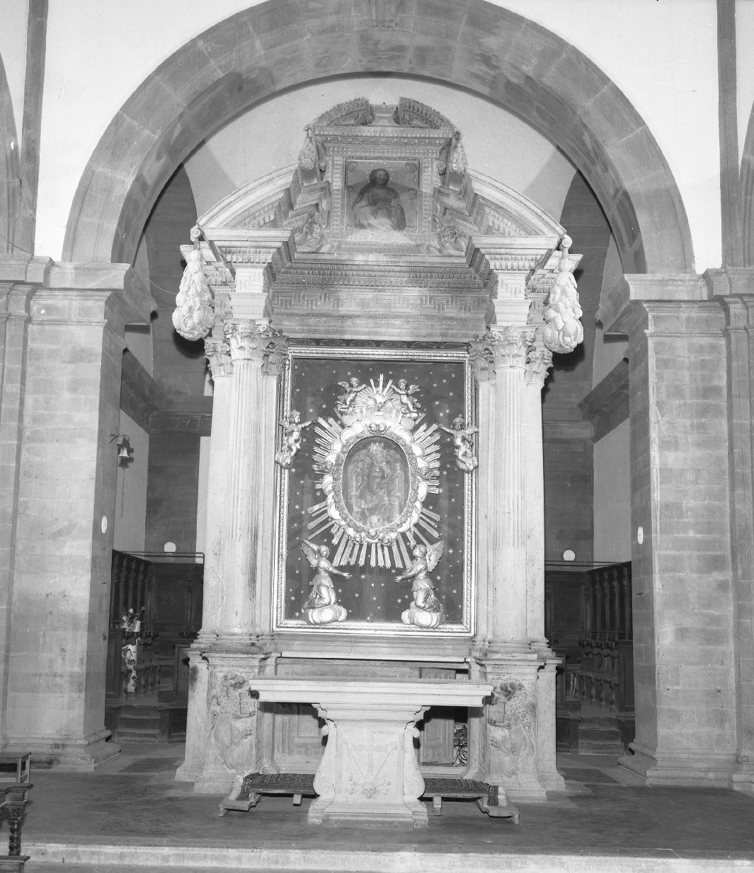 - ISCRIZIONI sotto la cornice, nel retro dell'altare, ripetuta poco sotto - MAIOTTUS RADIUS CORTONENSIS. ETINGENIO.ETMANU INCIDEBAT:SUMPTIBVSECCLESIAE' AD1595 -
