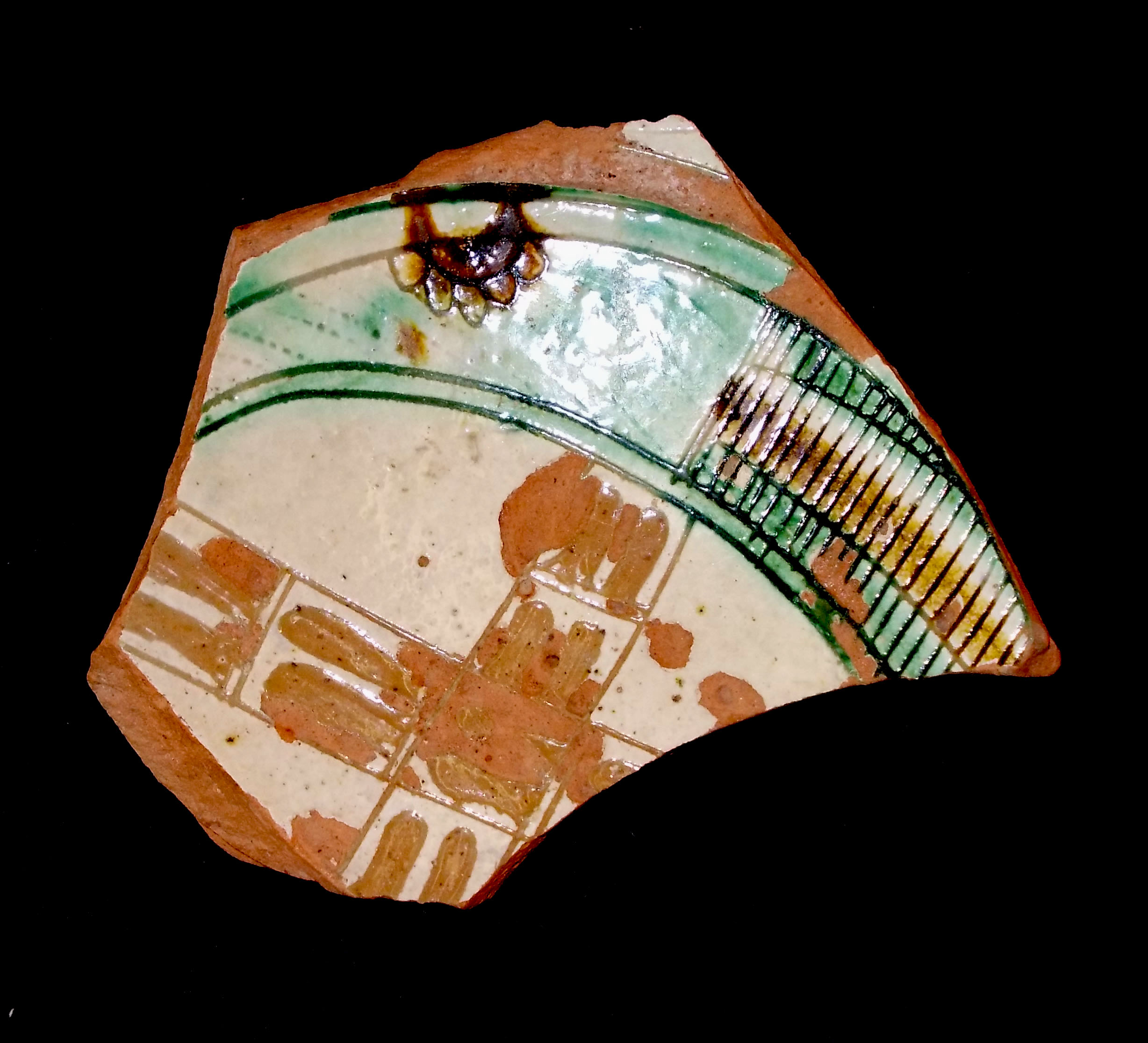Frammento di piatto in ceramica con decorazione graffita a punta policroma proveniente dalle botteghe lucchesi