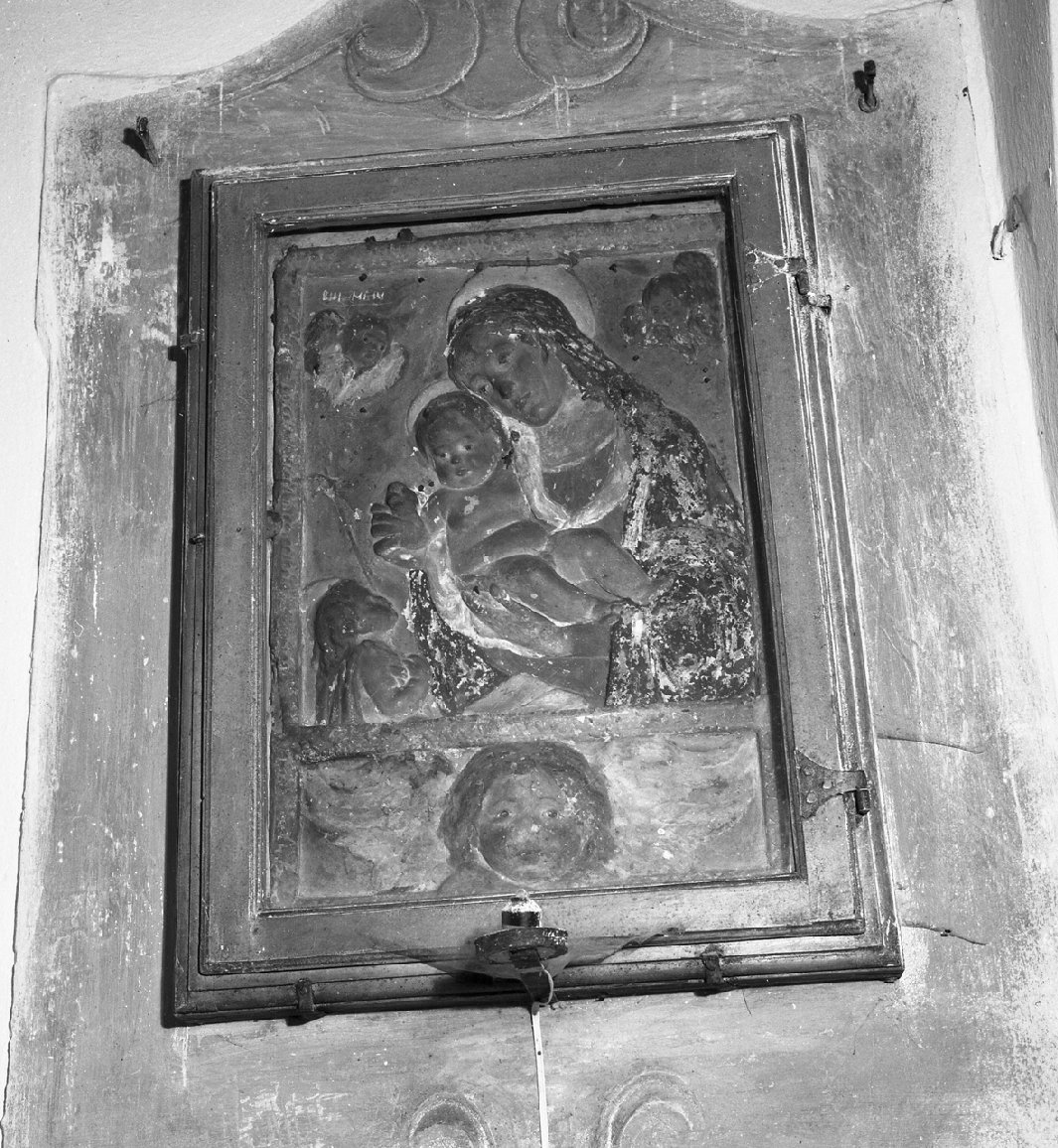 Personaggi: Madonna. Personaggi: Bambino. Personaggi: san Giovannino. Figure: cherubini. Parti anatomiche: testa di cherubino