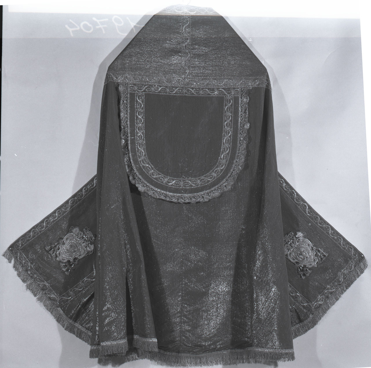 Piviale a fondo viola e teletta d'oro con galloni ricamati in filo d'oro, a motivi vegetali intrecciati con un nastro