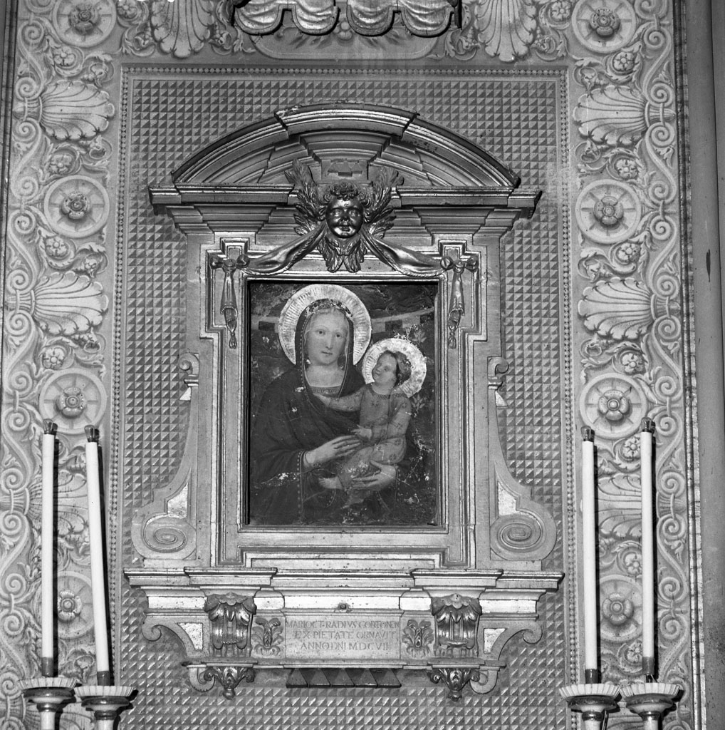 - NOTIZIE STORICO CRITICHE Di piacevole fattura, l'edicola datata 1608, a cui tipologicamente si rfanno le altre due in pietra (v. schede nn. 09/00222968-69), venne realizzata dal cortonese Mariotto Radi. Dello scultore - la cui attività è scarsamente documentata - si ricorda la successiva esecuzione per la medesima Chiesa, dell'Altare della Famiglia Baldelli (v. scheda n. 09/00222976)
