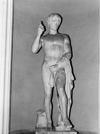- NOTIZIE STORICO CRITICHE Segnalata da Lazzoni C. nella "Prima Stanza dei Saggi", e' citata da Emilio Lazzoni come "Lavoratore". Si tratta del I saggio di pensionato dell'Andrei inviato da Roma all'Accademia nello stesso anno di esecuzione, il 1853. La scelta del tema, un contadino impegnato a vangare, esprime l'adesione alle tematiche del naturalismo imperante, ma l'opera e' nel complesso fiacca e convenzionale e la resa espressiva lascia alquanto a desiderare, non essendovi traccia del dinamismo che dovrebbe caratterizzare una persona impegnata in uno sforzo fisico. Il contadino infatti e' di una fissita' innaturale e sembra reggere l'asta della vanga piuttosto che imprimervi la spinta necessaria a infiggerla quasi per intero nel terreno