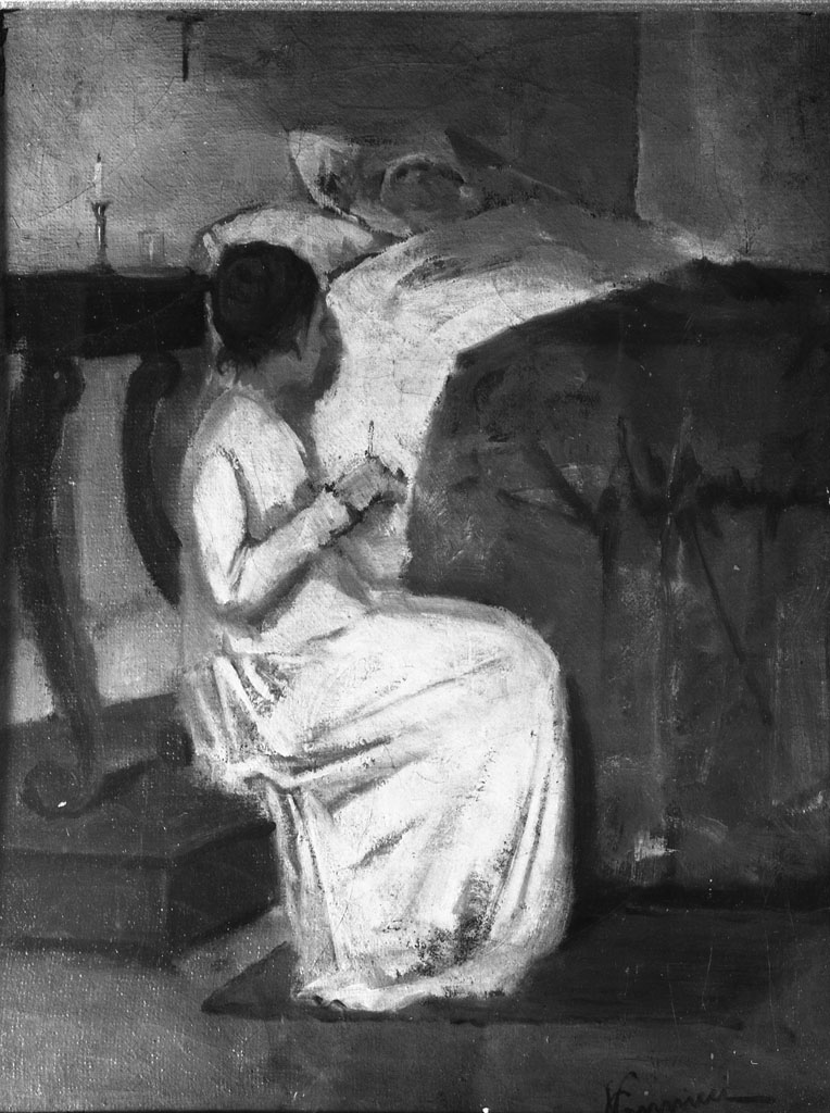 - NOTIZIE STORICO CRITICHE Nel catalogo della Pinacoteca del 1921 il Salmi cita il dipinto di Cannicci come un recente acquisto di Mario Galli successivamente donato al Museo. La tela è di piccole dimensioni e secondo il Salmi è "condotta con franchezza di tecnica, ricca di dolce ed intima poesia materna". Il dipinto rivela lo stretto rapporto di Niccolò Cannicci con l'ambiente macchiaiolo a Firenze, in particolare con Diego Martelli. Il tipo di pennellata piuttosto rapida data a colpi brevi, fa pensare che il dipinto sia databile intorno agli anni Novanta, ovvero in un momento successivo al suo ricovero nell'ospedale psichiatrico di Siena, avvenuto nel 1891. Le opere eseguite dopo il 1893, anno in cui il Cannicci lasciò l'ospedale, sono caratterizzate da uno stile più evoluto. Tra queste le "Anitre" di Palazzo Pitti e le "Gramignaie al fiume" (Firenze, Cassa di Risparmio)