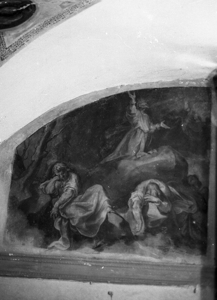 - NOTIZIE STORICO CRITICHE Il ciclo è composto da 12 lunette lungo le pareti laterali dell'oratorio, da 2 lunette spezzate nelle testate, da un ovale nel soffitto, e da una lunetta in un ambiente attiguo; esso rappresenta 16 episodi della vita di Cristo. Il ciclo fu commissionato dal camarlengo della compagnia del Crocifisso Cosimo Rigi (ritratto nell'ovale del soffitto) ad Alessandro, Cherubino e Giovanni Alberti; il primo pagamento per i lavori dovevano essere già terminati. Per il finanziamento della decorazione venne richiesto il contributo di varie famiglie di cui resta traccia negli stemmi superstiti di alcune lunette. Data la sostanziale omogeneità della decorazioni risulta difficile una esatta individuazione delle aprti spettanti a ognuno dei tre fratelli; va ricordato infatti che aquelle date essi avevano maturato esperienze affini improntate allo stile compositivo tipico della cultura figurativa romana al tempo di Sisto V. Evidente è la fusione di elementi derivati da Federico Barocci, ma anche dalla tradizione incisoria nordica e da un certo gusto di esasperazione anatomica di matrice manierista