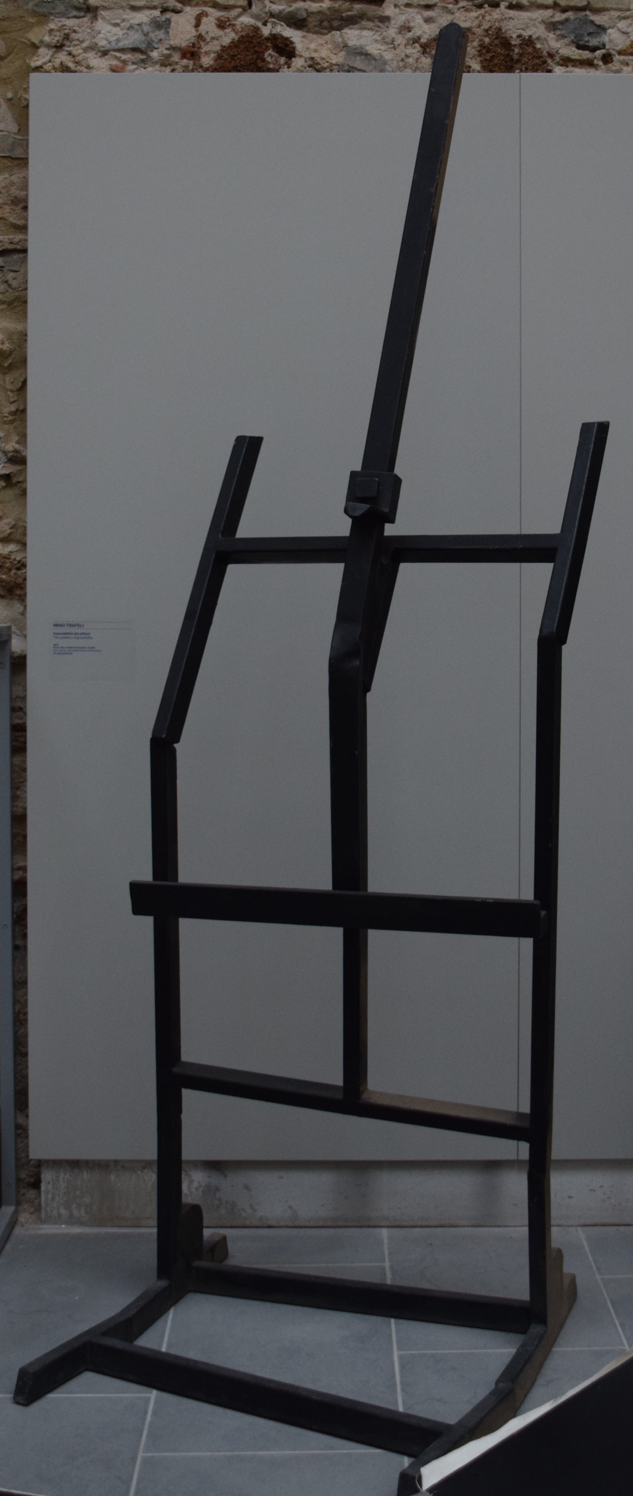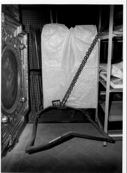 - NOTIZIE STORICO CRITICHE Trafeli, dopo un inizio post-cubista nel dopoguerra e dopo successivi esiti espressionistici ed informali, è approdato dal '68 ad un'immagine oggettuale. L'opera in questione fa parte di un environment che l'artista ha effettuato a Torino nel '74 in uno spazio espositivo alternativo, uno scantinato, nel quale comparivano una serie di dodici "impossibilità" che spiazzavano oggetti tratti dalla realtà. In tale sequenza non mancano - "...le tele da dipingere che Trafeli ha minuziosamente scassato..." (De Sanctis, catalogo della mostra suddetta 1974) a costituire una chiara denuncia di sfiducia radicale legata, certo, alla sensiblità di un artista che non si è legato ai compromessi del mercato dell'arte. L'opera è stata alla I Biennale del Museo progressivo d'arte contemporanea di Livorno; pure in deposito ai Bottini dell'Olio è un'altra opera di Trafeli: "Torso" (inv. 1991/346, vedi scheda OA relativa) già VII Premio Modigliani