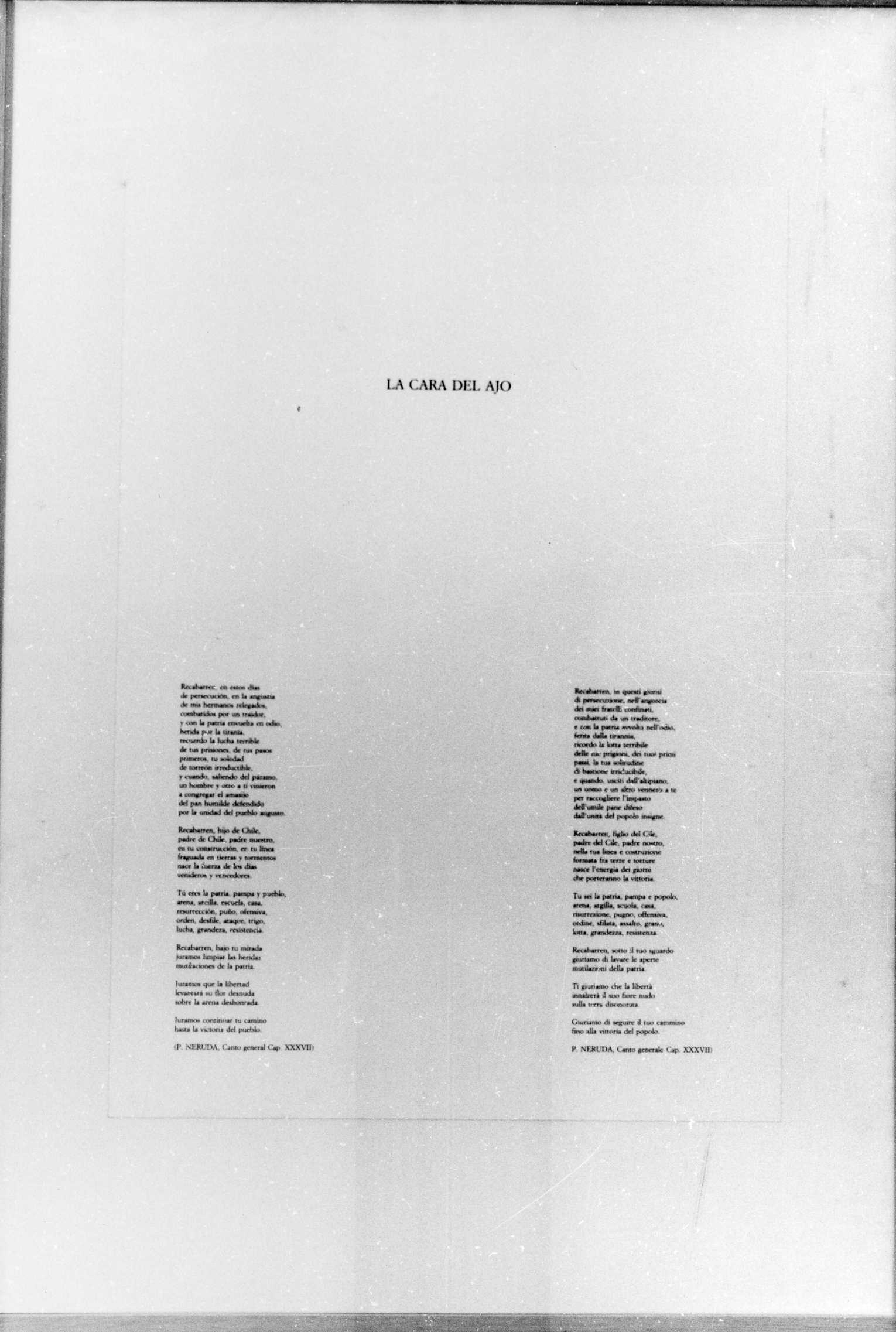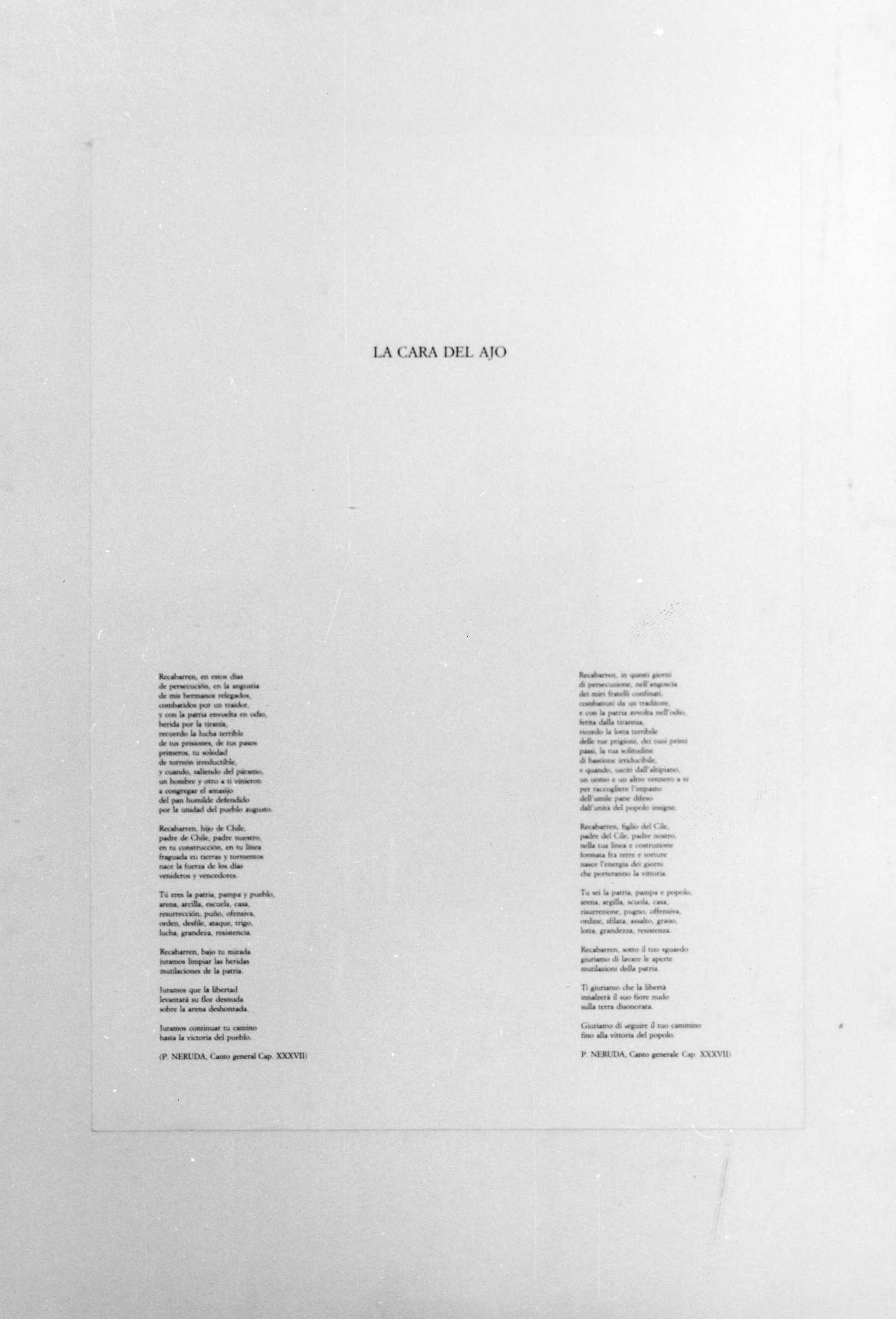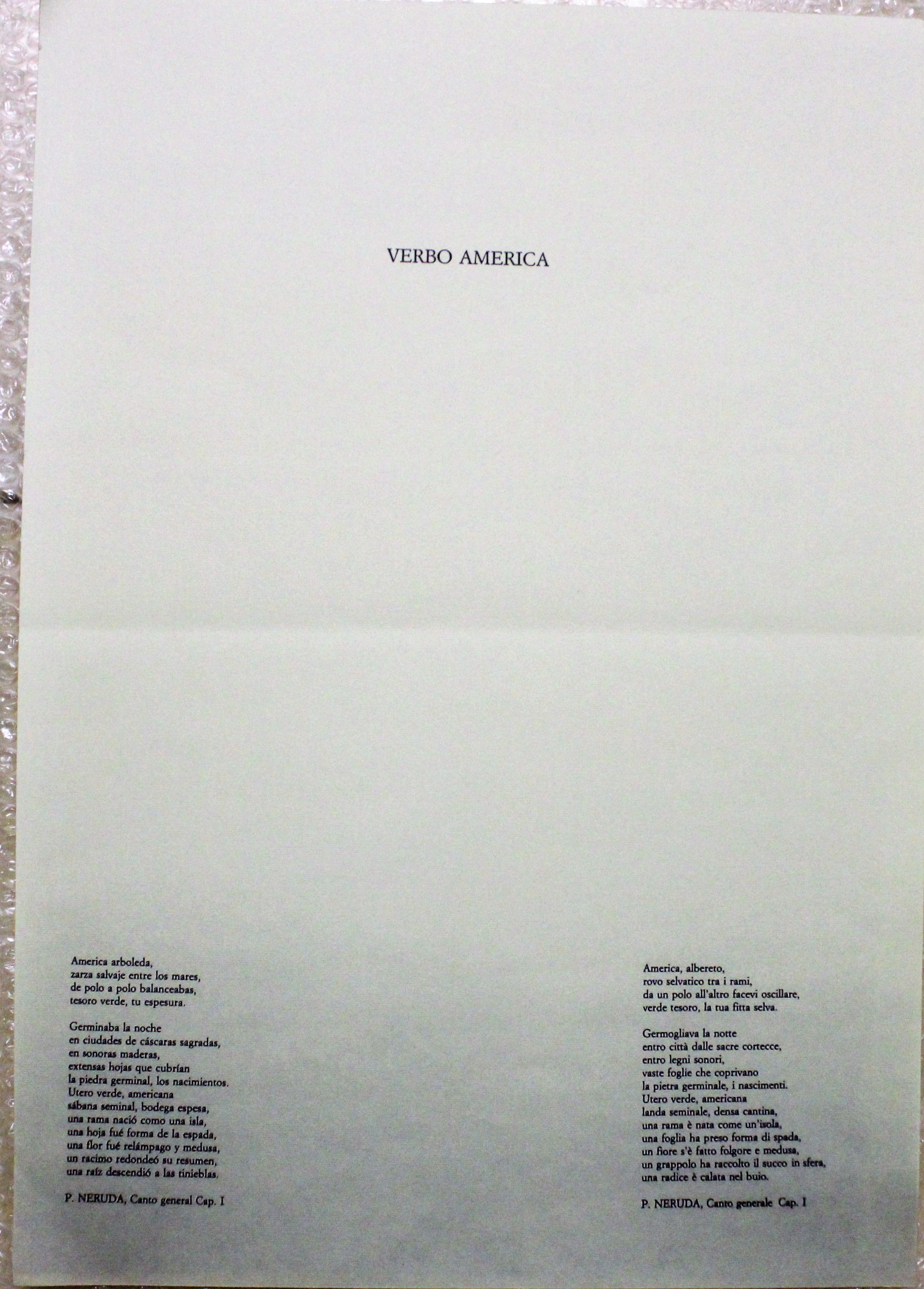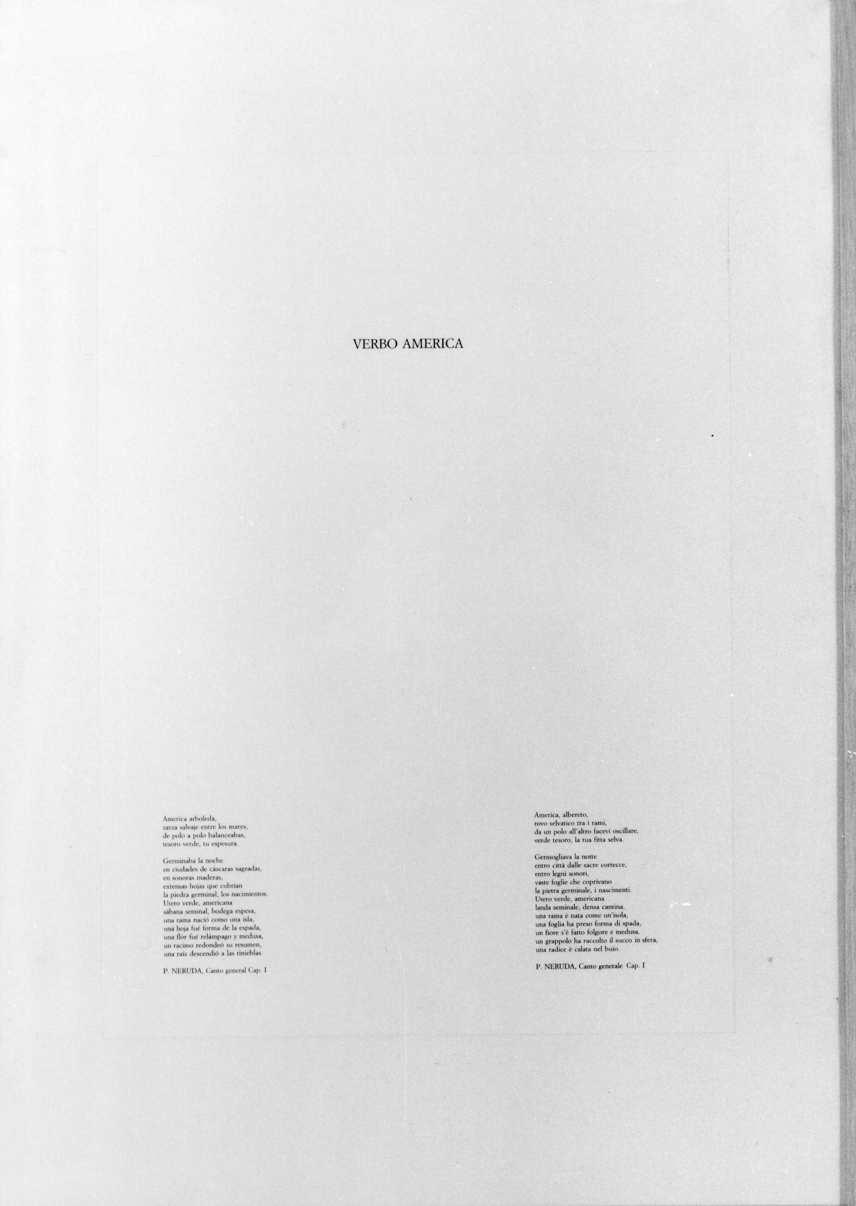 - NOTIZIE STORICO CRITICHE La litografia fa parte di una serie di cui costituisce, forse, il frontespizio (vedi schede seguenti): le litografie a colori sono accompagnate da dei testi di Neruda. Matta ha un esordio come pittore surrealista e le sue prime opere si affidano a processi di scrittura automatica; in seguito la sua pittura, dal fortissimo accento politico, si è evoluta verso forme figurali antropomorfiche immerse in uno spazio spesso frenetico. Litografia in bianco e nero in cui compaiono in alto dei disegni antropomorfi stilizzati sotto ai quali sta un testo intitolato"Verbo America" in spagnolo e in italiano. Segue la data, 1983, e la firma