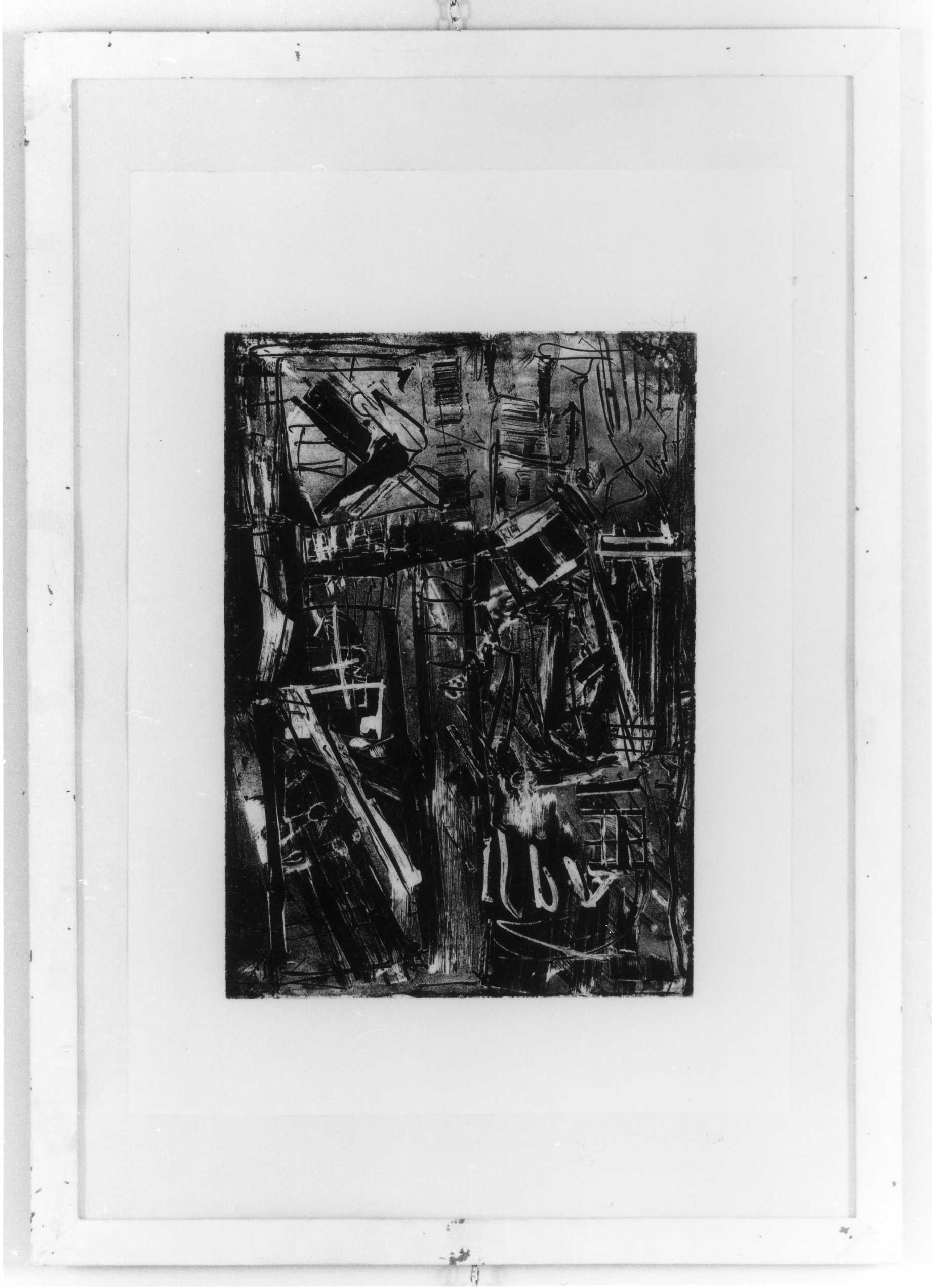 - NOTIZIE STORICO CRITICHE La litografia, acquisto o dono forse da connettere alla mostra "Segno / tracoerenza e trasgressione" tenutasi nell'82 presso il Museo progressivo d'artecontemporanea di Villa Maria di Livorno (v. cat.), è stata, appunto, stampata nell'82 da una lastra risalente al 1976, come testimonia la doppia data in calce. Di Vedova altre opere sono in giacenza presso il deposito dei Bottini dell'Olio: "Lettera aperta", plurimo del 1978/79 e le quattro lastre dai "Corsi sperimentali della Sommer Akademie di Salisburgo", queste ultime già presso il suddetto museo (v. schede OA 09/00266440; 09/00266376, quest'ultima anche per le notizie sull'autore e per la bibliografia relativa). Litografia in bianco e nero raffigurante larghe pennellate, scritte e numeri. In basso a sinistra la firma e la data 76/82, a destra i dati di tiratura della stampa (72/99)