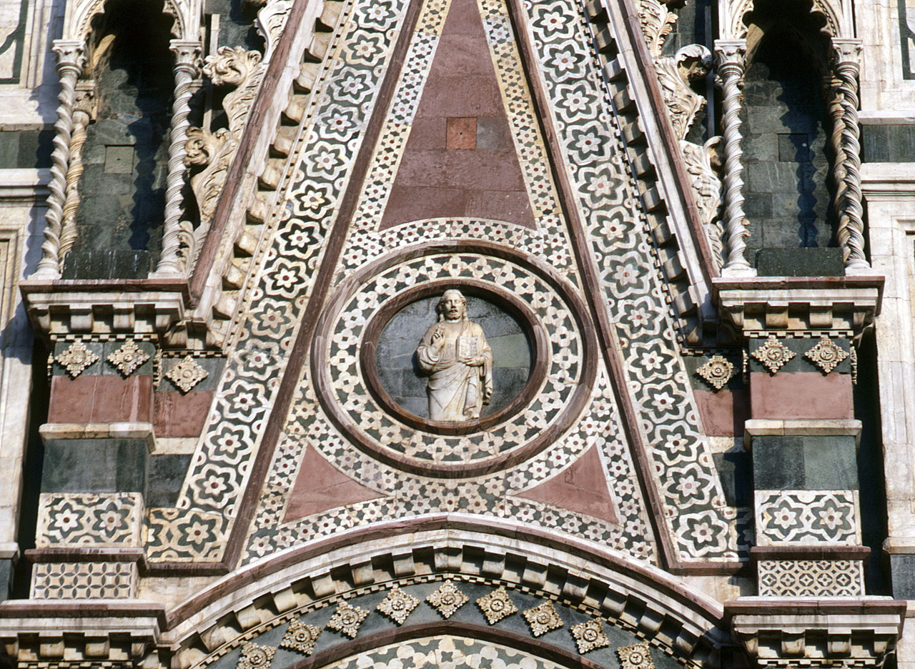 - NOTIZIE STORICO CRITICHE Quasi tutti gli storici che hanno studiato questo rilievo vi hanno notato la stessa mano che eseguiva l'angelo dell'"Annunciazione", in origine situato nel tabernacolo di fianco, sulla sinistra. A.Schmarsow (1887) li attribuiva entrambi ad Antonio di Banco; M.Reymond (1897) li accostava, invece, ad una statuetta di Cristo, opera di Andrea Pisano, nel Museo dell'Opera. U.Procacci, poi, vi avrebbe visto la mano di Niccolò di Luca Spinelli (1928; anche i Paatz, in seguito, avrebbero seguito questa indicazione); Luisa Becherucci avrebbe proposto, invece, il nome di Luca di Giovanni da Siena (1977) . G.Kteytenberg (1981) avrebbe infine rilevato, nel "Cristo", una stretta vicinanza stilistica con uno dei "Profeti" posti sulle finestre della Tribuna della Croce, e, come quella, lo attribuiva a Francesco Sellaio (lo studioso segnalava anche il rifacimento ottocentesco della testa del Cristo)