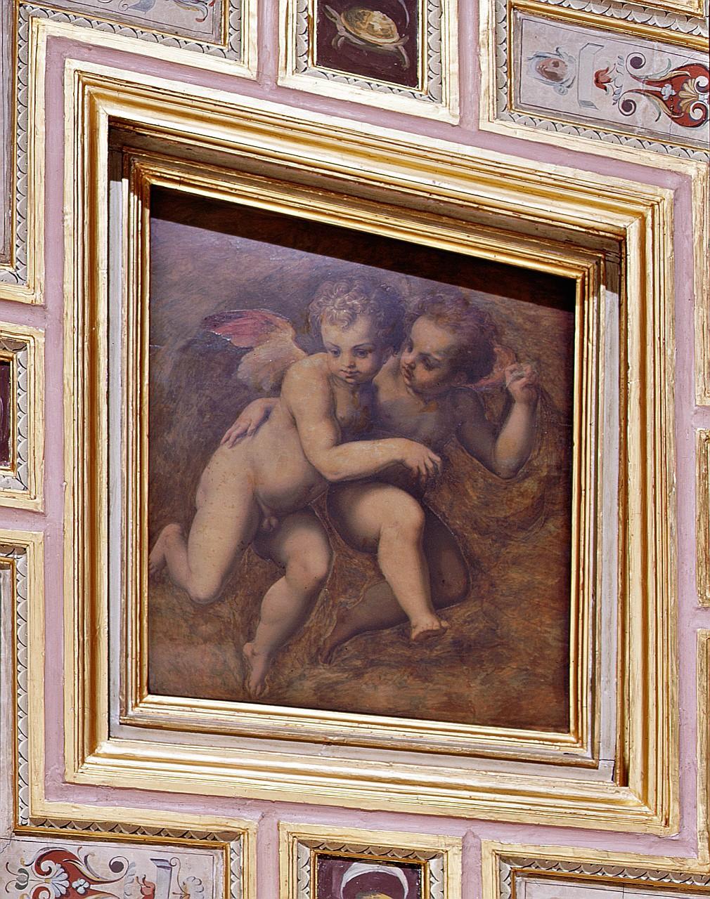 - NOTIZIE STORICO CRITICHE I quattro pannelli del soffitto con putti che siabbracciano sono unanimamente ritenuti opera del Vasari dalla critica