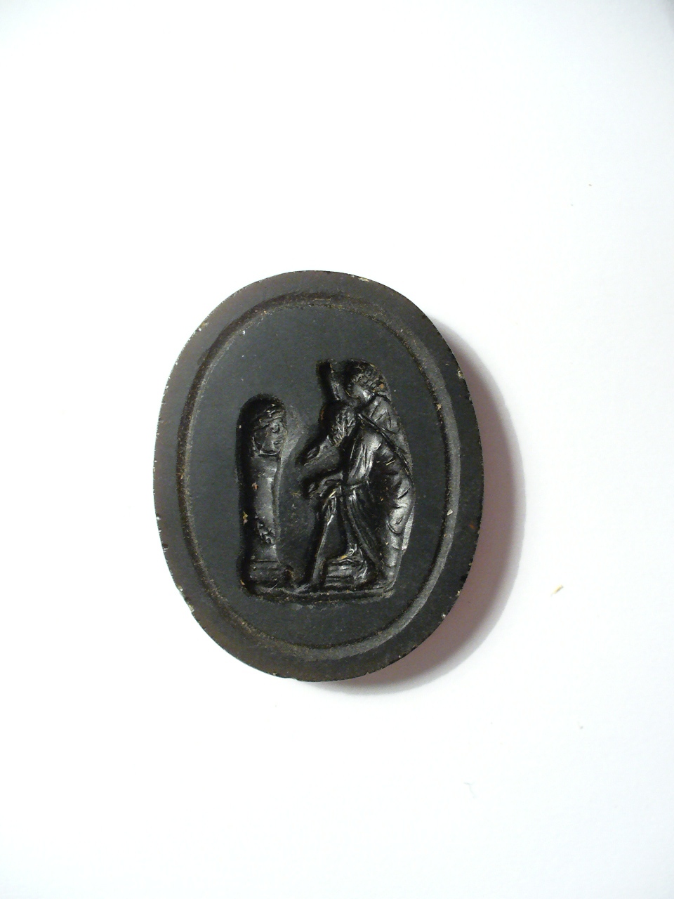 - NOTIZIE STORICO CRITICHE La matrice appartiene a un gruppo di stampi in vetro per la realizzazione di impronte in zolfo o scagliola commissionati al romano Bartolomeo Paoletti nel 1796 e ultimati nel 1797. Il Paoletti riprodusse i cammei e gli intagli più importanti della collezione glittica dei granduchi di Toscana per un totale di oltre seicento esemplari (per ulteriori notizie si rimanda alla scheda OA 09/00649739). In particolare, la matrice qui considerata è tratta da un cammeo antico conservato nel Museo Archeologico Nazionale di Firenze (inv. n. 14481). Nel catalogo manoscritto di Tommaso Puccini dedicato alle gemme riprodotte dal Paoletti il cammeo è descritto nel modo seguente: "Onice. Vecchio barbato calvo involto nel pallio col pedo nella sinistra e dietro ad esso una femmina pure palliata colla tibia nella destra. L'uno curvo sul davanti e appoggiato sul ginocchio del pié sinistro che posa sopra un masso l'altro stante amendue in atto di stendere la mano in segno di fare alcuna offerta avanti una maschera scenica posata sopra una colonna ornata di un festone di fondo. Il Gori Tav. 85 n. 3 Tomo II dice esservi rappresentato un comico e Talia musa della commedia e perché la sua interpretazione non avesse contradditori ha tolta la tibia alla femmina, perché non conviene che a Euterpe. Il lavoro di buon stile è eseguito in una bellissima pietra, perché le carni, il pedo, la tibia, il festone, il masso, il terreno sono di un bel colore sardonico poco diverso dal fondo" (BdU, ms. 47, n. 46 - 1219). La matrice è di vetro colore marrone. Un altro stampo in vetro incolore trasparente tratto dalla stessa pietra si conserva nella collezione Paoletti del Museo di Roma (cfr. Pirzio Biroli Stefanelli 2007, p. 158, tomo secondo, n. 596)