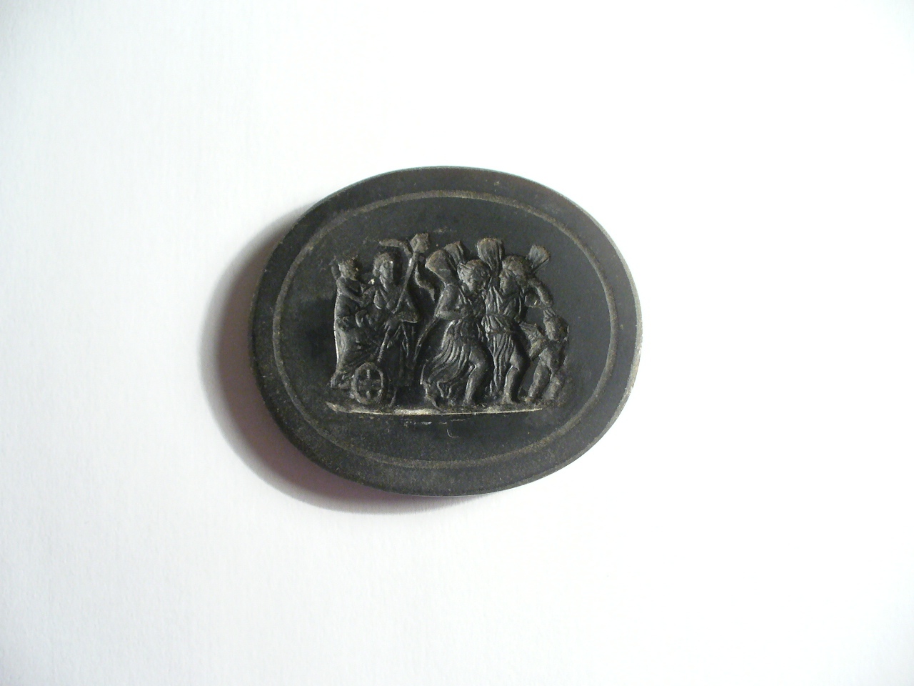 - NOTIZIE STORICO CRITICHE La matrice appartiene a un gruppo di stampi in vetro per la realizzazione di impronte in zolfo o scagliola commissionati al romano Bartolomeo Paoletti nel 1796 e ultimati nel 1797. Il Paoletti riprodusse i cammei e gli intagli più importanti della collezione glittica dei granduchi di Toscana per un totale di oltre seicento esemplari (per ulteriori notizie si rimanda alla scheda OA 09/00649739). In particolare, la matrice qui considerata deriva da un piccolo cammeo antico conservato presso il Museo Archeologico Nazionale di Firenze (inv. n. 14456). Nel catalogo manoscritto di Tommaso Puccini dedicato alle gemme riprodotte dal Paoletti il cammeo è citato nel modo seguente: "Onice.Due figure con tunica e ali di farfalla, l'una di femmina è Psiche l'altra a quel che sembra virile, amendue precedute da Amore conducono agli Elisj Arianna la quale vstita di tunica, peplo col tirso nella destra piede sul carro accarezzata da un amorino. Il Gori Tav. 93 n. 2 Tom. I non ha punto sospettato della virilità di una delle due figure; che pure è molto indicata nelle forme della testa e del petto, come anche nell'acconciatura. Il lavoro di buon stile è eseguito in un bel bianco sopra fondo sardonico chiaro" (BdU, ms. 47, n. 21 - 1191). La matrice è in vetro marrone