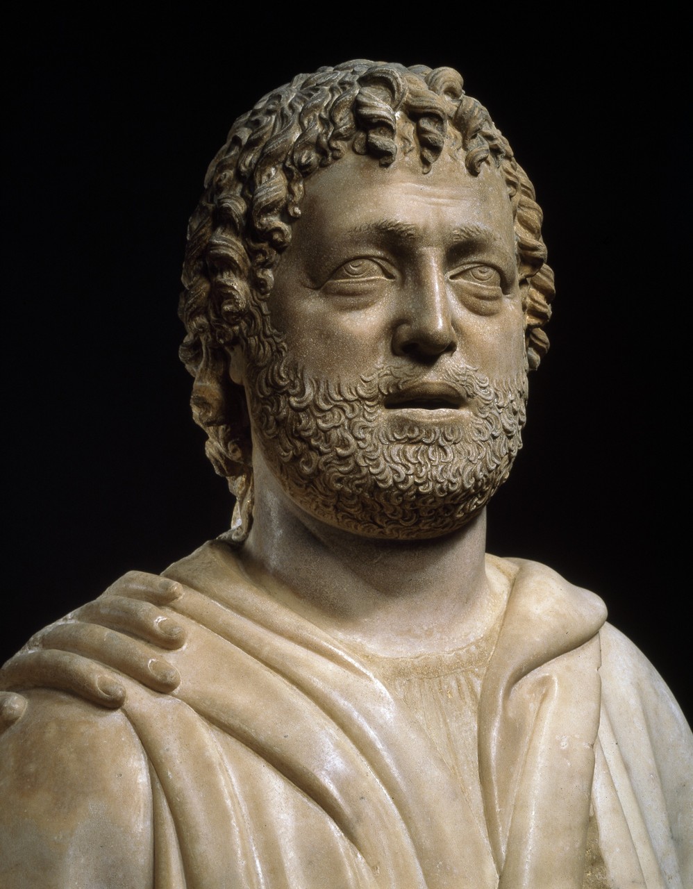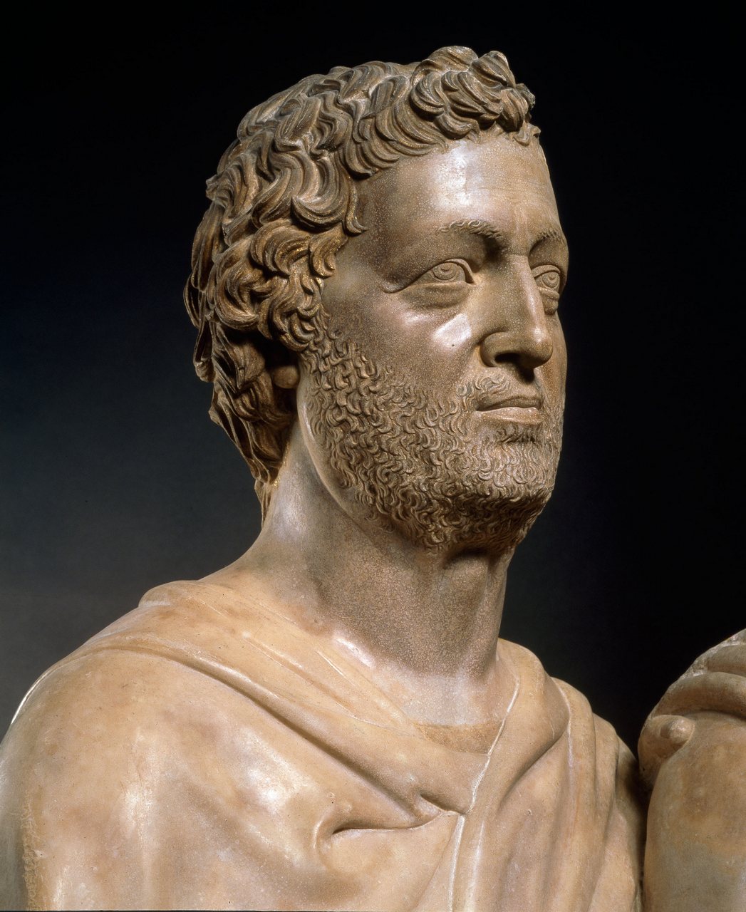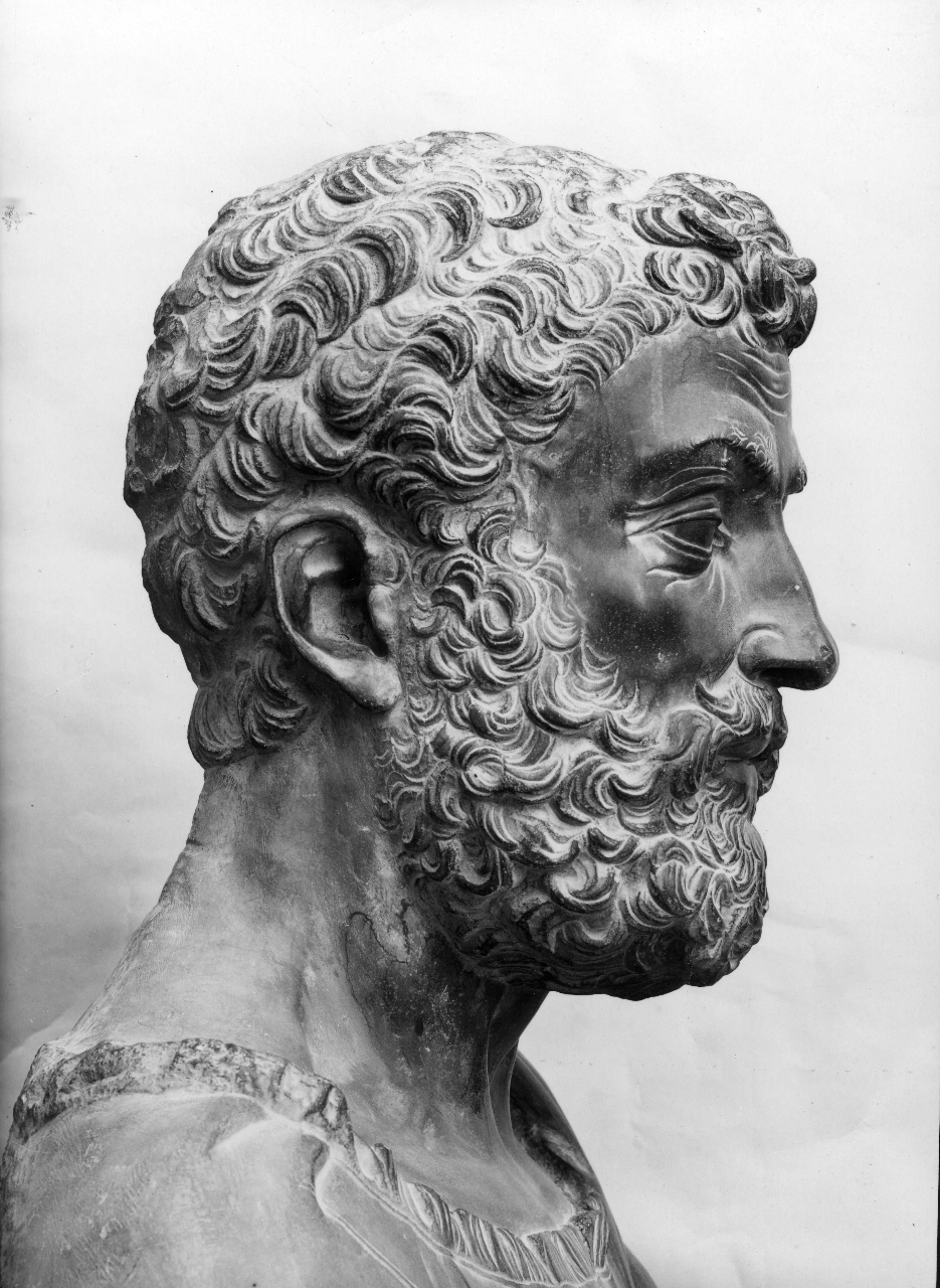 Gruppo scultoreo in marmo. Le quattro figure, disposte a semicerchio, sono rialzate su basamenti delimitati da una cornice a sagoma mistilinea in marmo grigio venato. L'abbigliamento all'antica, i volti pacati e le acconciature di barba e capelli rimandano chiaramente alla statuaria di epoca romana