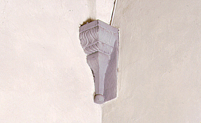 - NOTIZIE STORICO CRITICHE La realizzazione dei mezzanini tra il primo e il secondo piano risale probabilmente all'intervento di Michelozzo che nel 1454 ca. lavorò nel primo cortile del palazzo. Come nota il Lensi Orlandi lo stesso Vasari suggerisce che Michelozzo ribassò i soffitti del primo piano per rendere agibile il mezzanino, che illuminò attraverso oculi aperti sul cortile tra il primo e il secondo ordine di finestre. I peducci della stanza, che presentano una sobria decorazione a treccia e a palmette, sono da considerare quindi risalenti all'intervento michelozziano