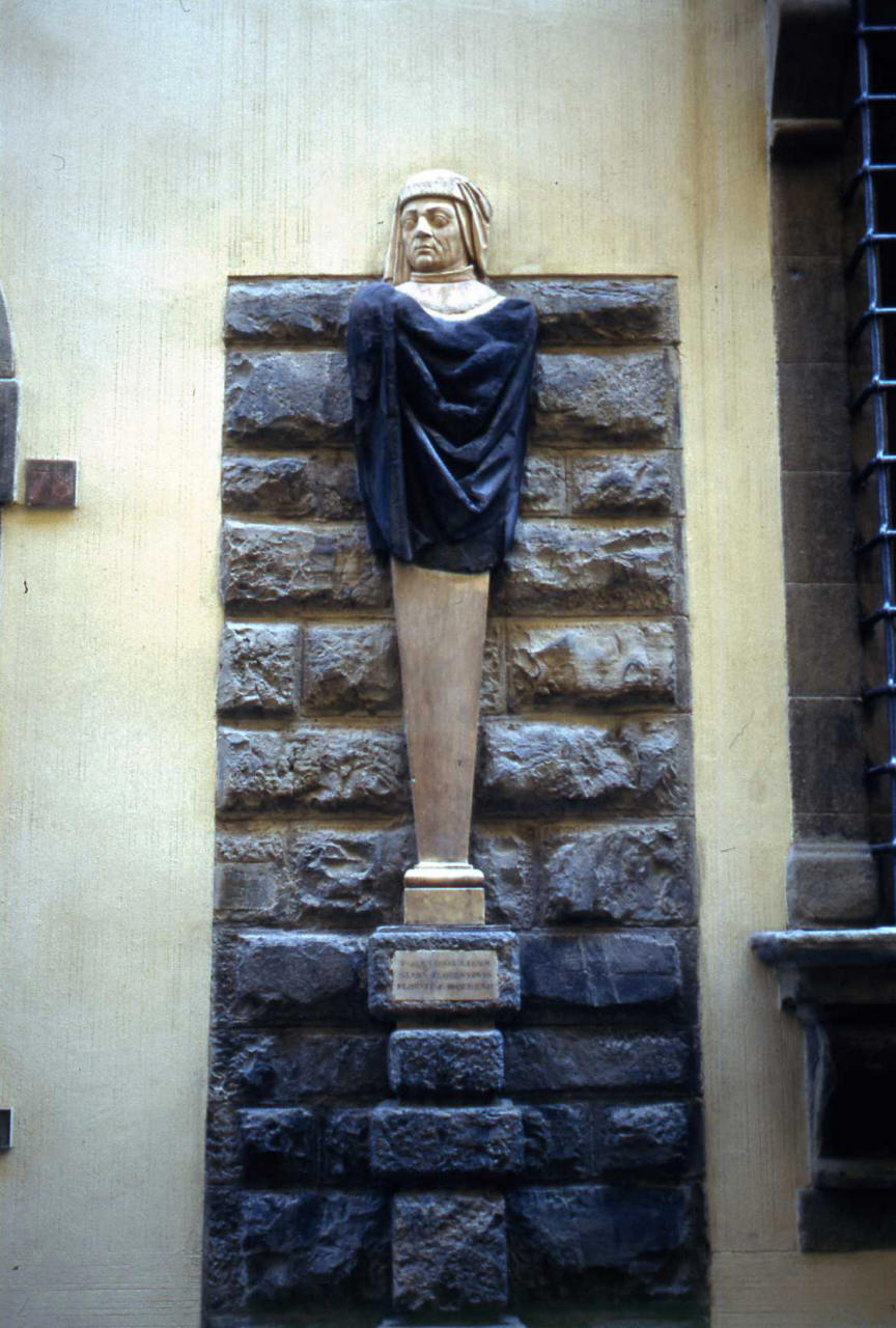 - NOTIZIE STORICO CRITICHE Il palazzo su cui sono apposte tredici erme di toscani illustri, distintisi nelle scienze e nelle arti, fu possesso originario degli Altoviti. Passato poi dalla famiglia di Rinaldo degli Albizi ai Valori venne decorato in questo modo singolare a cura di Baccio Valori, senatore di Ferdinando I de' Medici con le sculture del Caccini. Soltanto cinque dei tredici personaggi ritratti sono muniti di cartiglio, e quindi chiaramente identificabili. Il palazzo fu subito marchiato dai fiorentini con il nome, tuttora usato, "dei Visacci". Questa è l'erma di Accorsio, chiamato senza alcun motivo Francesco Accursio che, dopo aver studiato legge presso l'Università di Bologna, fu giurista insigne. A lui è dedicata una mediocre statua sotto il loggiato degli Uffizi di O. Fantacchiotti del 1852