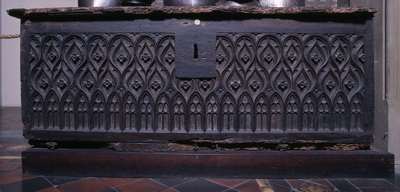 - NOTIZIE STORICO CRITICHE Assegnato dal Lensi (1918) alla produzione quattrocentesca di ambiente "franco-piemontese (Val d'Aosta)" e dal Cantelli (1974) dubitativemente ascritto all' "area tedesca", questo esemplare -a mio parere- puo' ritenersi un manufatto dell'ambiente franco-piemontese della seconda meta' del '400 come suggeriscono i molteplici confronti con i manufatti lignei tipologicamente e stilisticamente affini (vedi bibl. di confronto). E' da notare infatti che il motivo a bifore sormontato da "fioroni" intagliati nelle piu' svariate fogge e' l'elemento tipizzante la produzione lignea fra Gotico e Rinascimento nel territorio piemontese a diretto contatto con il mondo d'oltralpe dove analoghi motivi decorativi di ascendenza architettonica erano in uso sin dalla fine del '300. Gli altri due esemplari conservati al Museo Stibbert (cfr. schede P50243, P50245) sono repliche con varianti della medesima tipologia