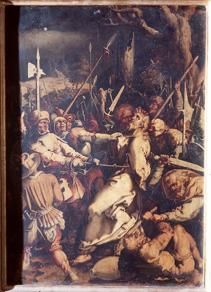 - NOTIZIE STORICO CRITICHE Il dipinto riproduce l'episodio della Cattura di Cristo facente parte della serie di stampe incise da Durer della cosiddetta Grande Passione (Bartsch n. 7). Dagli inventari sappiamo che il dipinto agli inizi del Settecento si trovava nella collezione del gran principe Ferdinando de' Medici, non conosciamo però la sua provenienza. Nel catalogo della mostra del 1980 è stato ipotizzato che possa trattarsi di un esempio di quelle copie da dipinti e stampe di Durer che vennero prodotti tra Cinque e Seicento per le corti europee, soprattutto tedesche