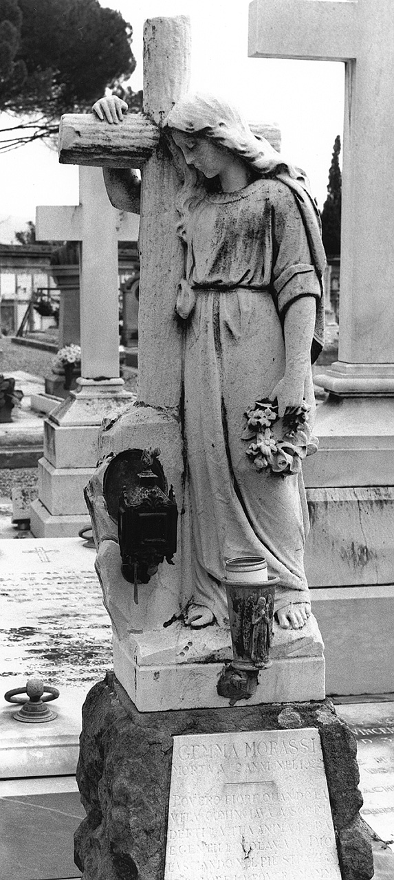 - NOTIZIE STORICO CRITICHE Si tratta di un monumento sepolcrale la cui tipologia è piuttosto comune. La figura è un'entità astratta e non si nota un intento ritrattistico o simbolico. Inoltre tutto il gruppo risulta disomogeneo come se fosse stato concepito a settori, non considerando l'unità formale. Questi elementi, assieme alla modesta qualità del lavoro suggeriscono di collocare l'opera nella produzione scultorea seriale, datandola attorno al 1925