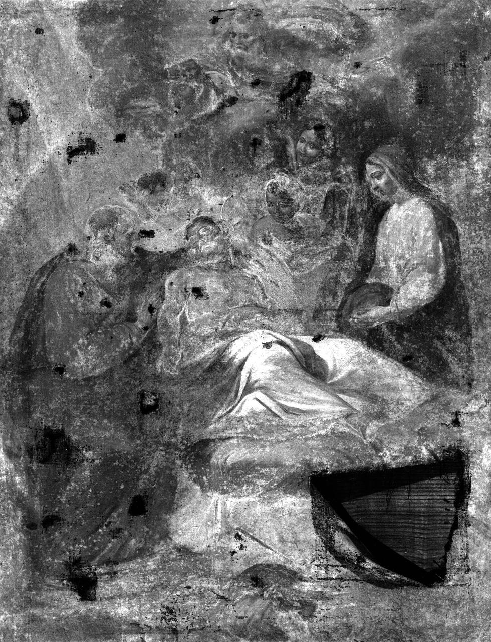 - NOTIZIE STORICO CRITICHE Il dipinto, reso quasi illeggibile dal pessimo stato di conservazione, fu eseguito in pendant con altri tre quadri raffiguranti episodi della vita di Cristo per lo più in rapporto con San Giuseppe e la Madonna (cfr. schede OA nn. 0900300477-0900300479). Con essi infatti ha in comune le misure, la tecnica pittorica ed i caratteri stilistici che rivelano la mano di uno stesso artista. Meno certa ma probabile è anche la relazione con altri due dipinti meglio conservati raffiguranti la "Madonna del Carmelo" e la "Adorazione del SS. Sacramento" (cfr. schede OA nn. 0900300481-82) di analoghe misure ed eseguiti probabilmente dallo stesso pittore. Il nostro quadro è opera piuttosto modesta di un artista fiorentino o pratese attivo nella prima metà del Settecento. Come si evince dal dipinto pendant con "Gesù nel tempio ritrovato dai genitori", copia dall'opera del pittore Camillo Sagrestani databile agli anni Venti del sec. XVIII (cfr. scheda OA n. 0900300477), anche questa tela è collocabile nel secondo quarto del Settecento. Qui, oltre all'influenza del Sagrestani e degli artisti fiorentini di questo ambito, visibile soprattutto nei panneggi frantumati e nelle ricerche chiaroscurali, l'artista si mostra sensibile all'ambiente romano ed in particolare al classicismo marattesco evidente nella figura della Madonna e soprattutto nella composizione della scena per la quale non è improbabile che il nosto artista si sia ispirato a un prototipo di questo ambito artistico