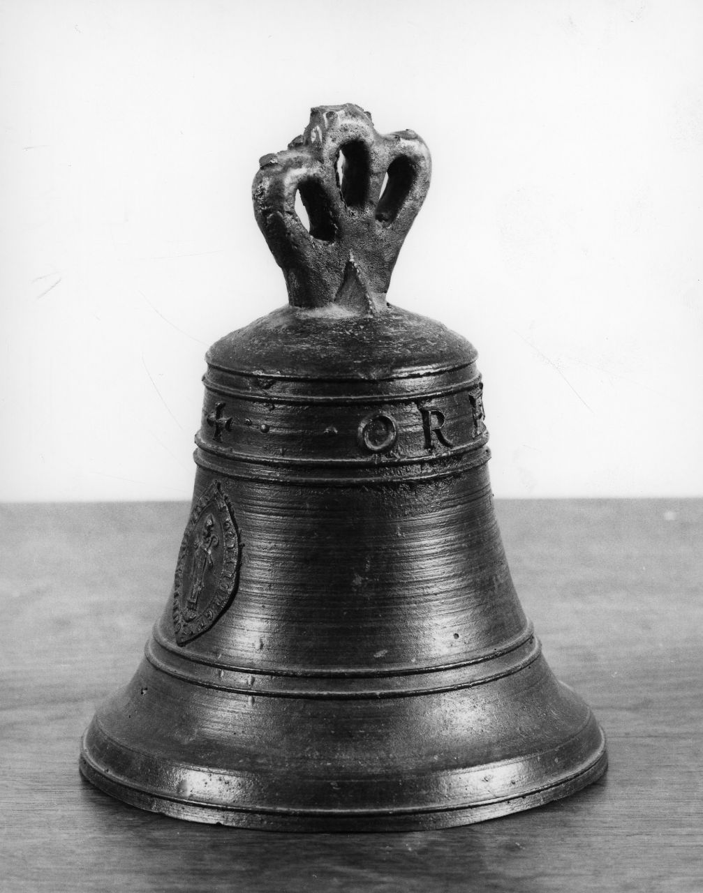 - NOTIZIE STORICO CRITICHE Queste campane di piccole dimensioni venivano, in genere, collocate vicino all'ingresso della sacrestia delle chiese e venivano utilizzate per segnalare ai fedeli l'inizio delle funzioni religiose. Essa e' databile al XVII secolo, tuttavia l'emblema applicato alla campana durante la fusione appare cronologicamente piu' antico