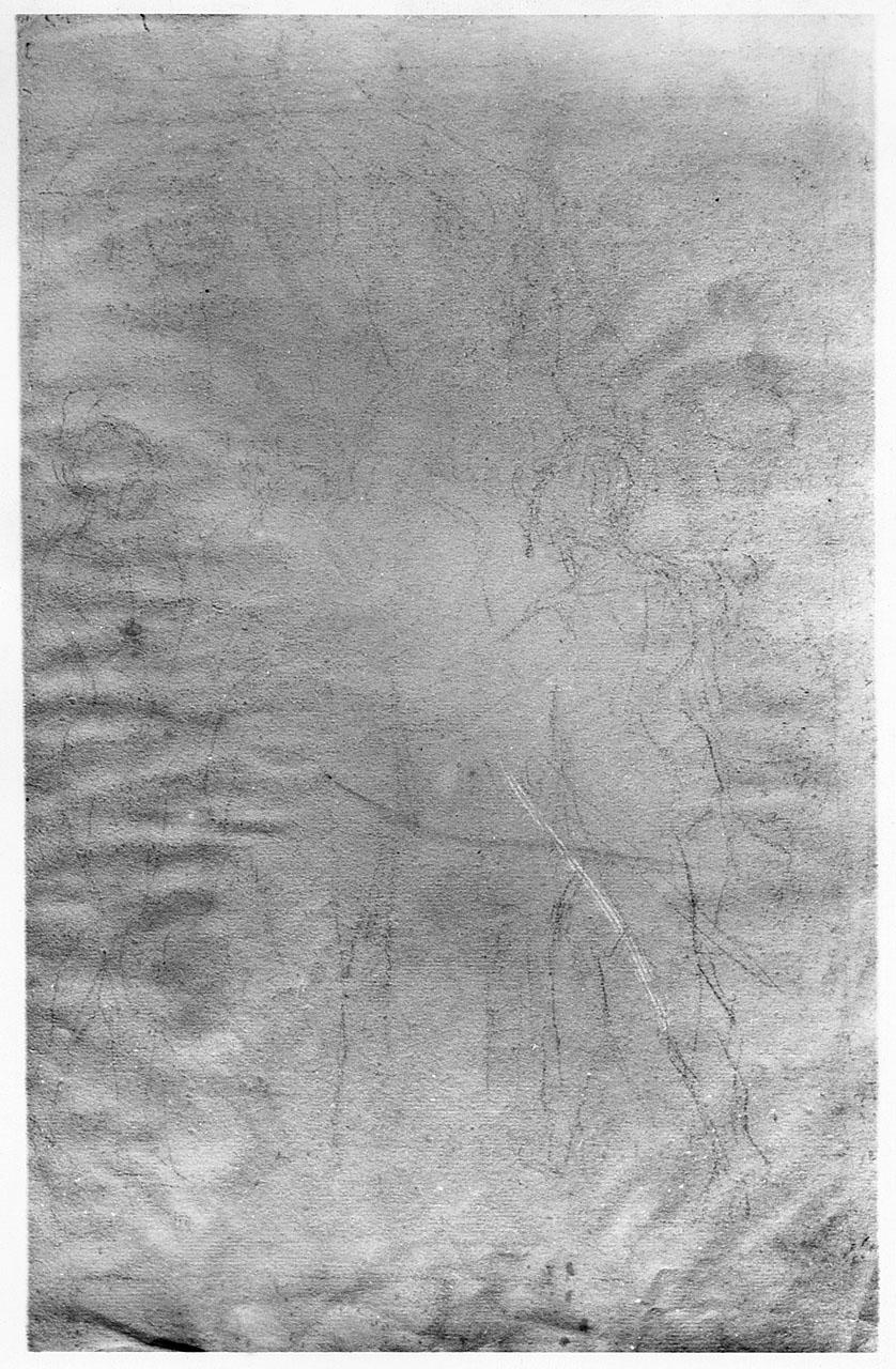 - NOTIZIE STORICO CRITICHE Soggetto quasi illeggibile. Tuttavia, dalla figura in primo piano, munita di spada ed elmo, si deduce che anche i soldati dovevano avere un ruolo determinante nella scena. Il foglio fa parte dello stesso gruppo (e della stessa mano esecutrice) di disegni conservati nella biblioteca pesciatina a tergo dei quali sono state incollate una o più stampe. A questo appartiene l'incisione di Loli Lorenzo con la "Madonna in Gloria fra i SS. Antonio da Padova con il Bambino Gesù e Niccolò Albergati" (cfr. foto SBAS FI 365078)
